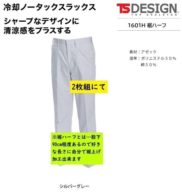 ビックイナバ特価◆TSDESIGN 1601H[春夏]冷却スラックス裾ハーフ【25シルバーグレー・W96cm】1枚7810円・通気性抜群の品、2枚即決2980円