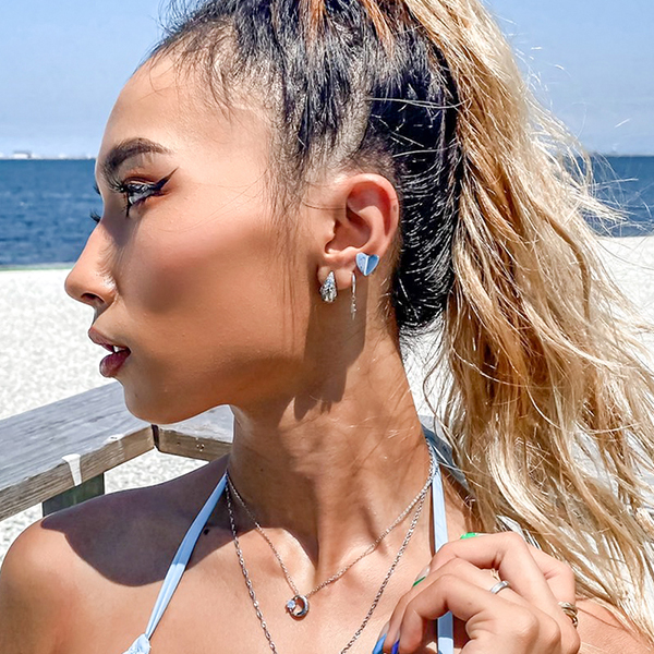 ★人気★インスタ映え★SNS★2WAY★ハワイアンジュエリー★金属アレルギー&温泉&海水浴OK★片耳販売★ステンレスピアス★ハート&波模様★