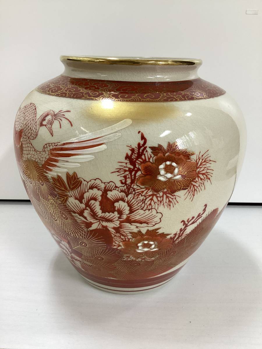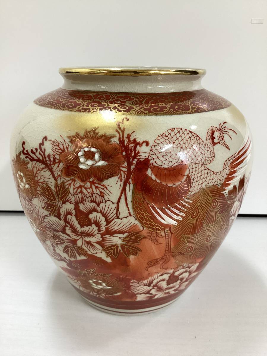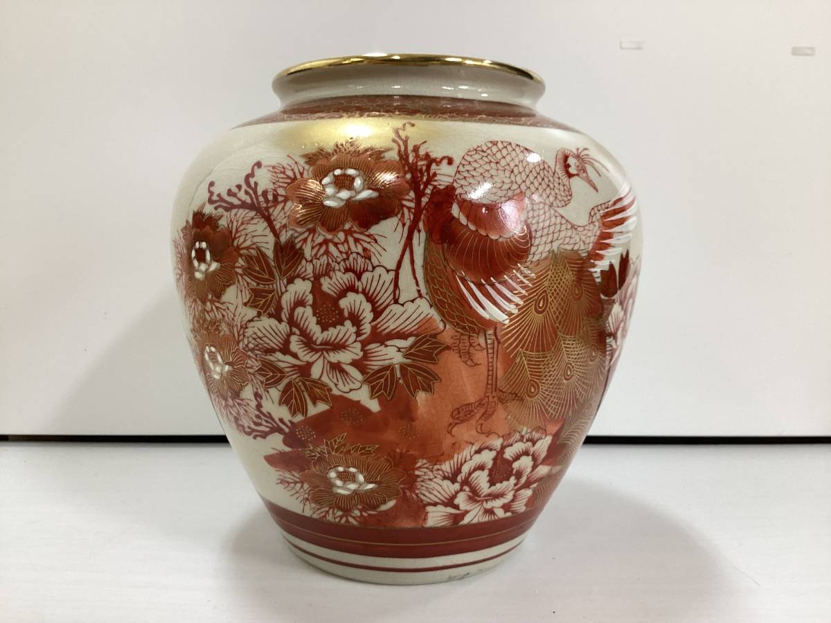 花瓶 九谷焼 九谷 西峰 花器 花入 赤絵 金彩 インテリア フラワーベース 壺 つぼ 在銘 K347