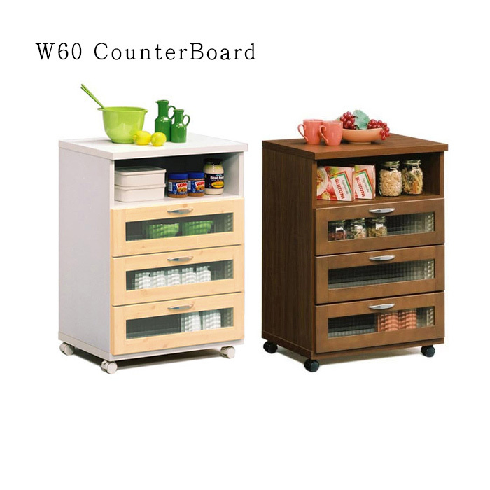 キッチン カウンター ワゴン サイド レンジボード カントリースタイル 60cm幅 安い スリム間仕切り キッチン台 ブラウン