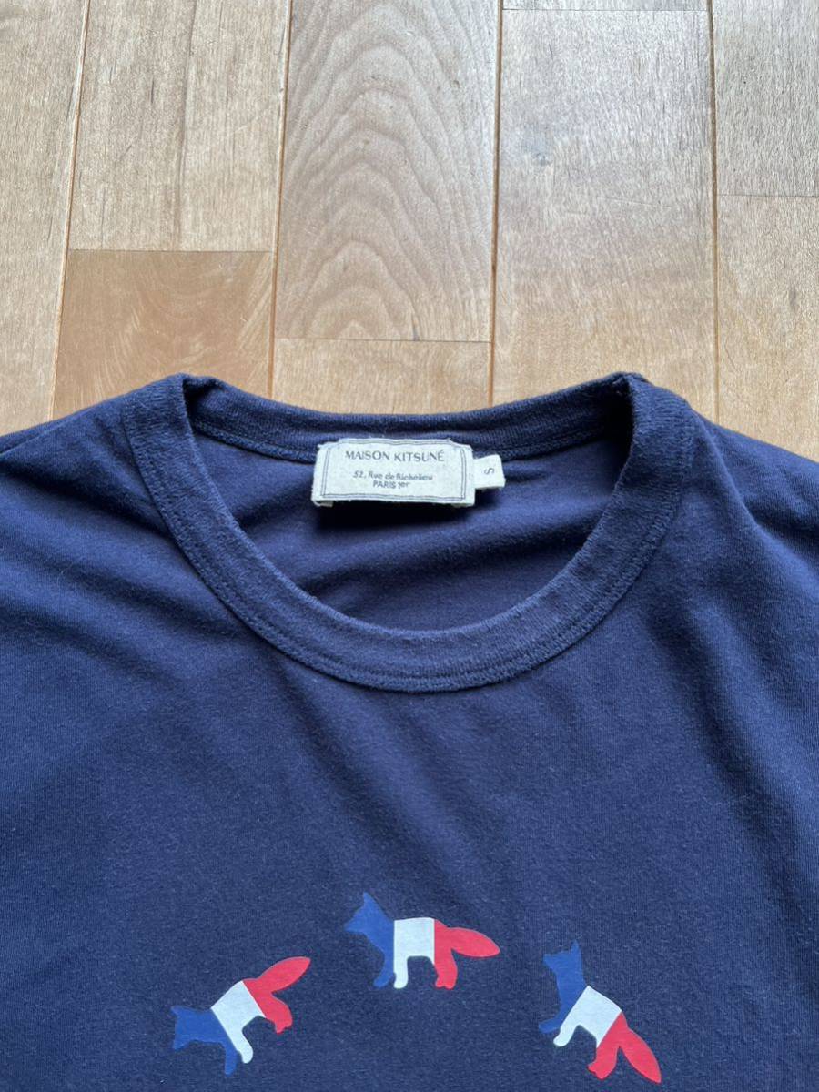「MAISON KITSUNE(メゾンキツネ)」トリコロールデカロゴTシャツになります。旅行も含めて、10回ほど使用したお品です。