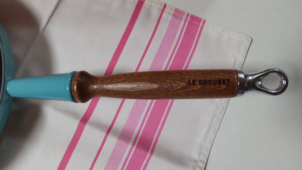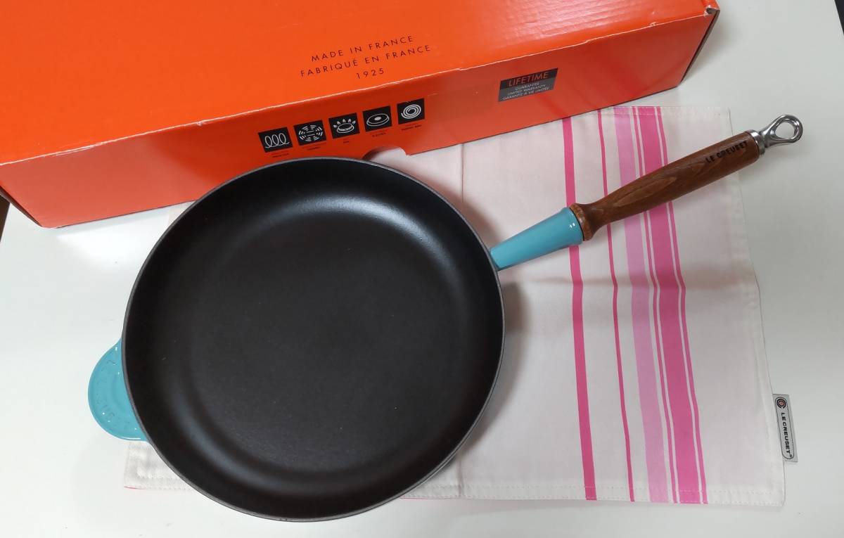 ルクルーゼのフライパン26cm(ウッドハンドル)です。
