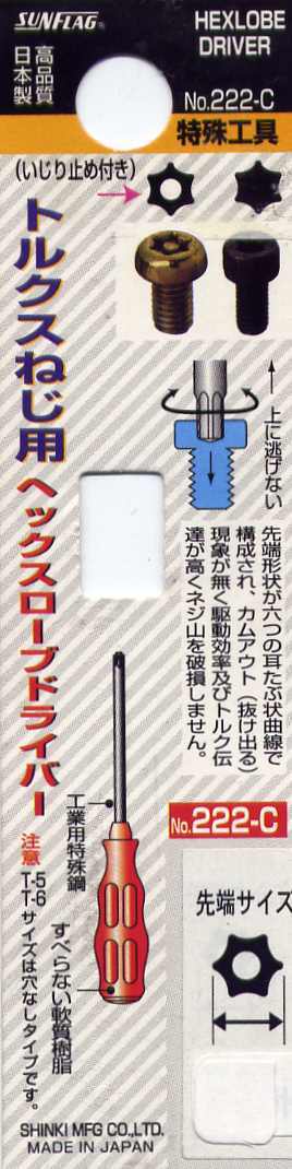 【トルクスねじ】上に逃げない/ヘックスローブドライバーT−8H抜け逃げ無