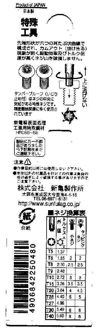 カムアウト(抜けでる)がなく上ににげないのでネジ山をつぶしません。頭部は熱処理加工した工業用特殊鋼/HRC56〜58を使用し耐久性があり、グリップは軟質樹脂ですべりにくい仕様です。