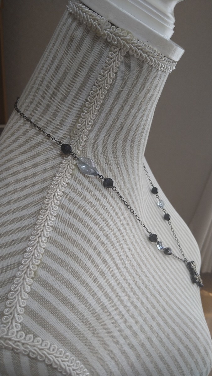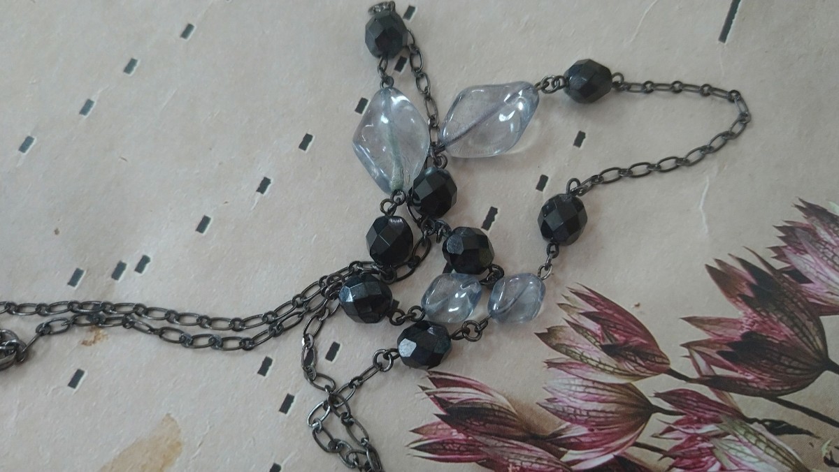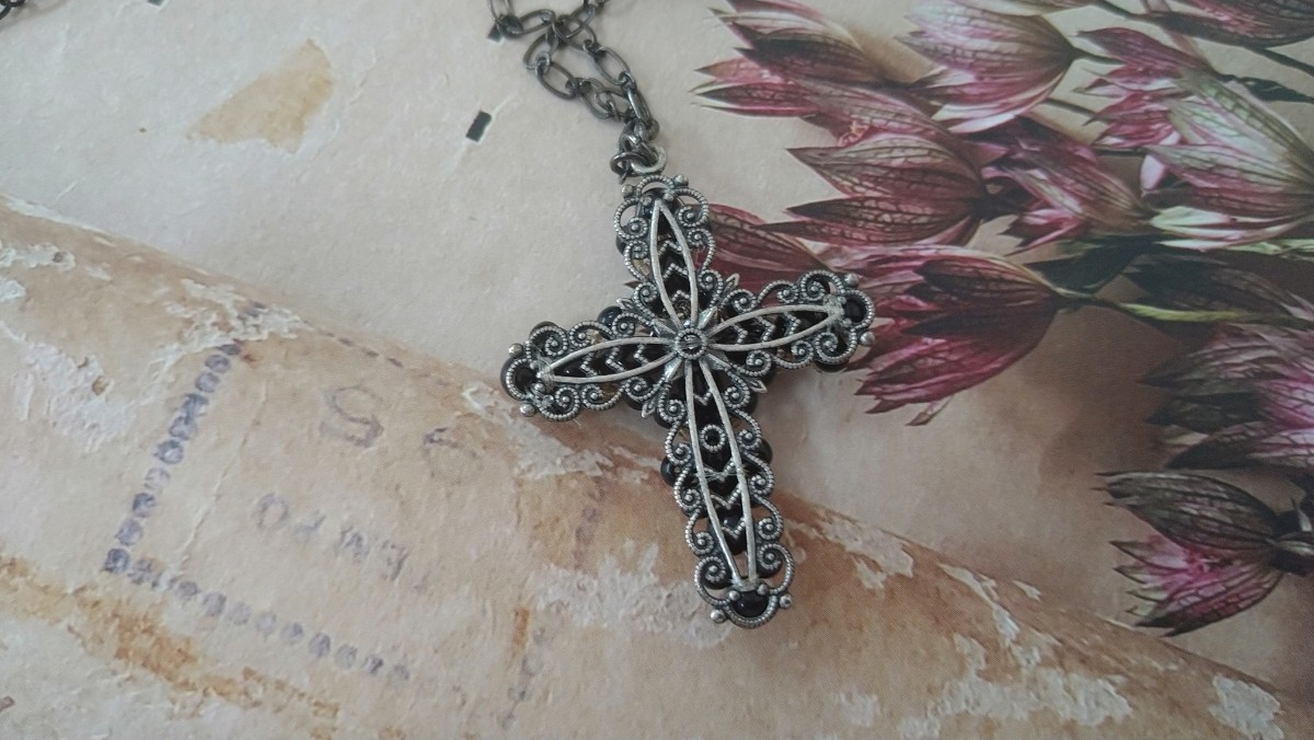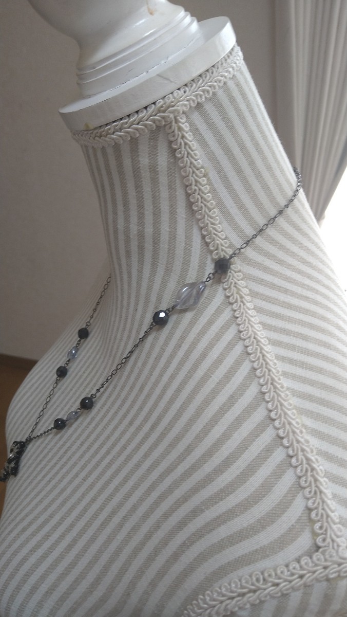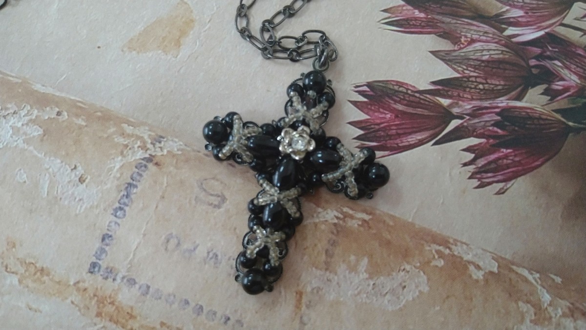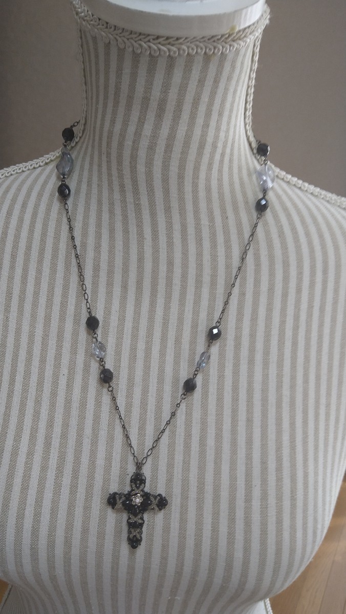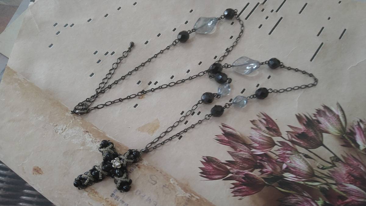 黒ビーズ×クロスモチーフ×クリアライトブルービーズ ネックレス | |||