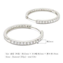 どこから見てもキレイが続く、華やかな輝きは片耳30ピース、トータル60ピースものダイヤモンドをフープ一周にびっしり敷き詰めたから