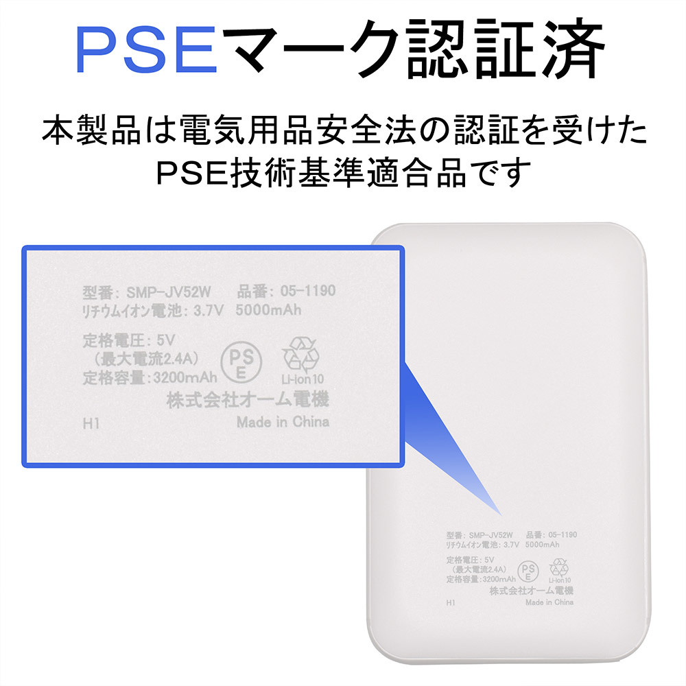 ● 合計最大出力2.4A、5000mAhタイプのモバイルチャージャー