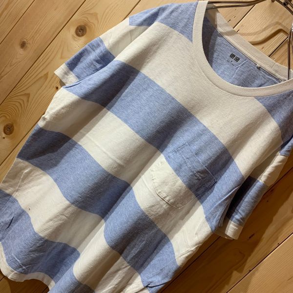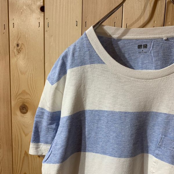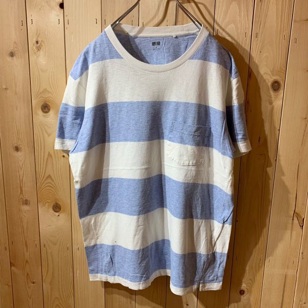 [KWT3509] UNOQLO ユニクロ 半袖Tシャツ メンズ ブルーボーダー M ポス