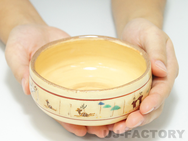 作品は奈良の地で赤膚焼の歴史を受け継いだ大塩正先生の作品で、今にも動き出しそうな色とりどりの奈良絵が特徴です。