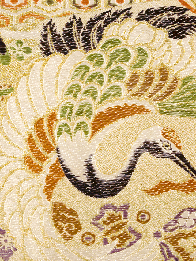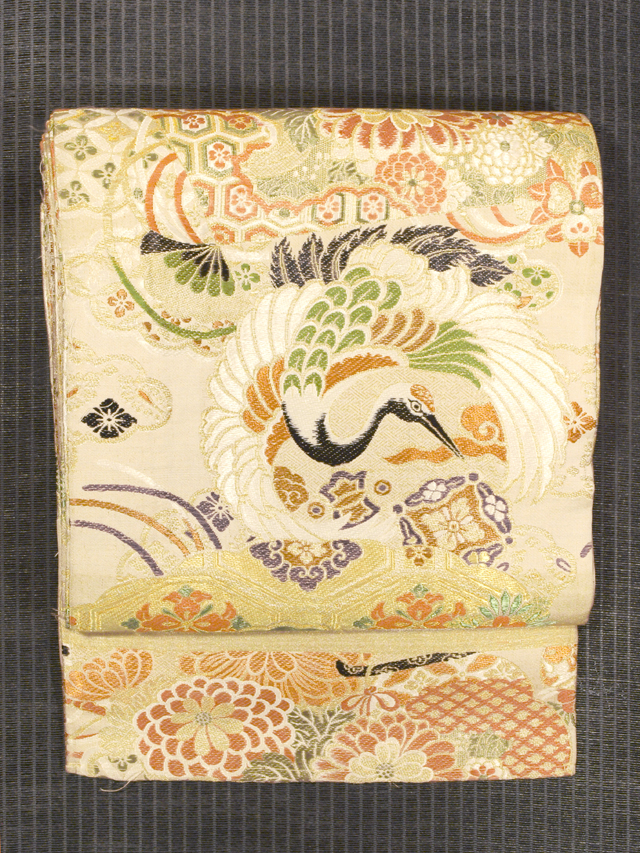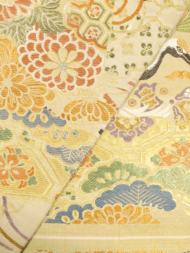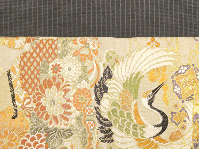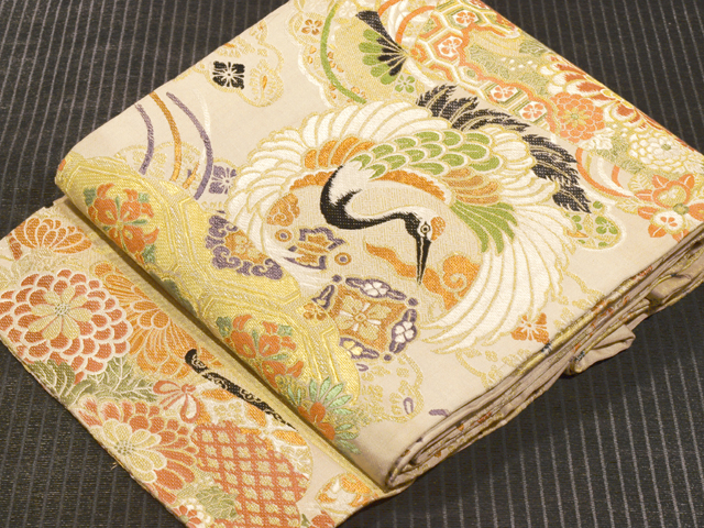 【アンティーク】雲と檜扇に鶴丸文 錦織 丸帯 TAMB02001 風楽 |