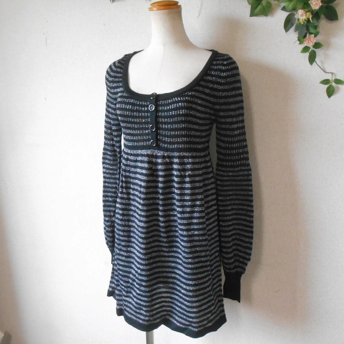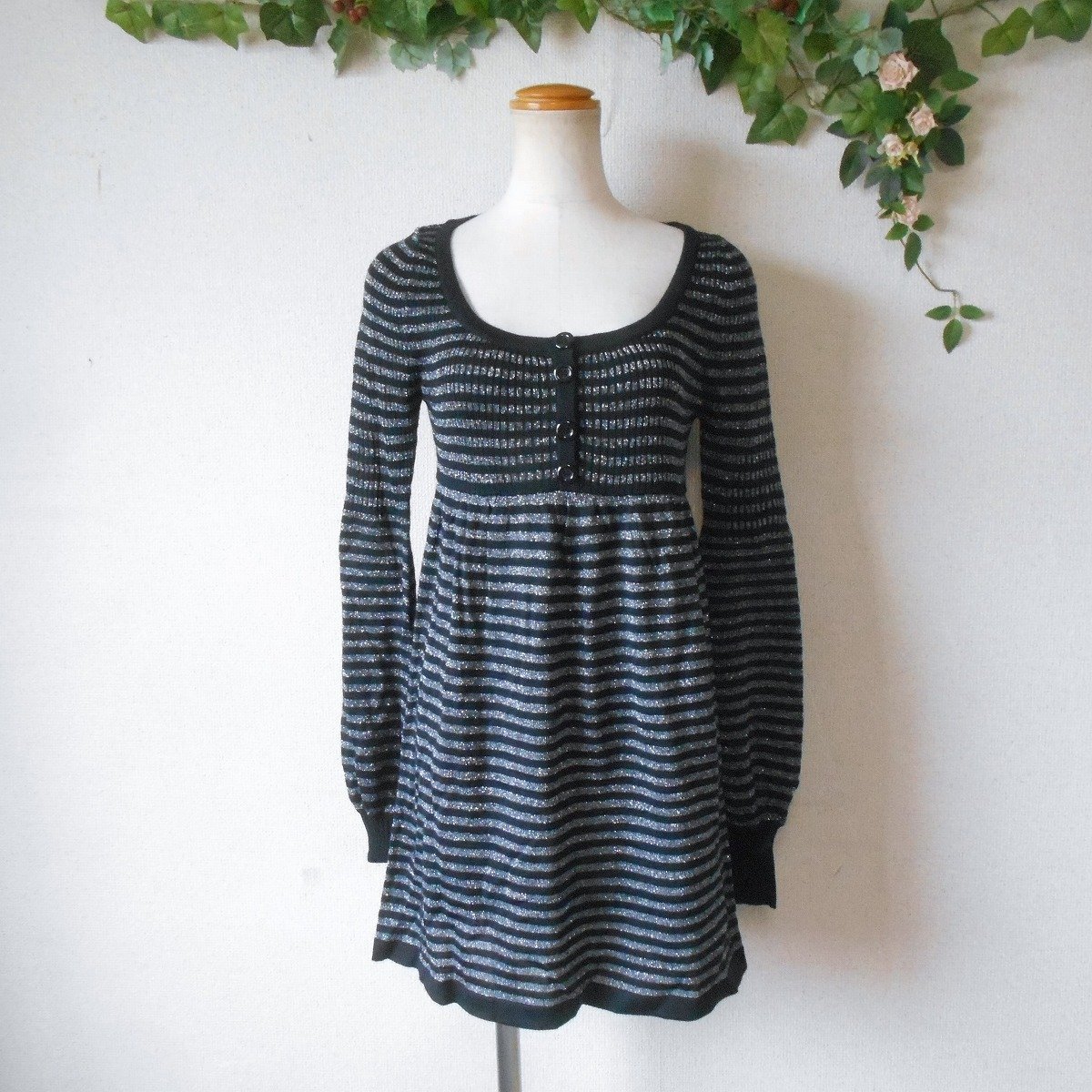 【ポイント】&byピンキー&ダイアンのニットワンピースになります。お色は黒とグレーのボーダーで、グレー部分にはシルバーラメが入っています。春や秋を中心に着ていただけるお品でとっても素敵な一着です。
