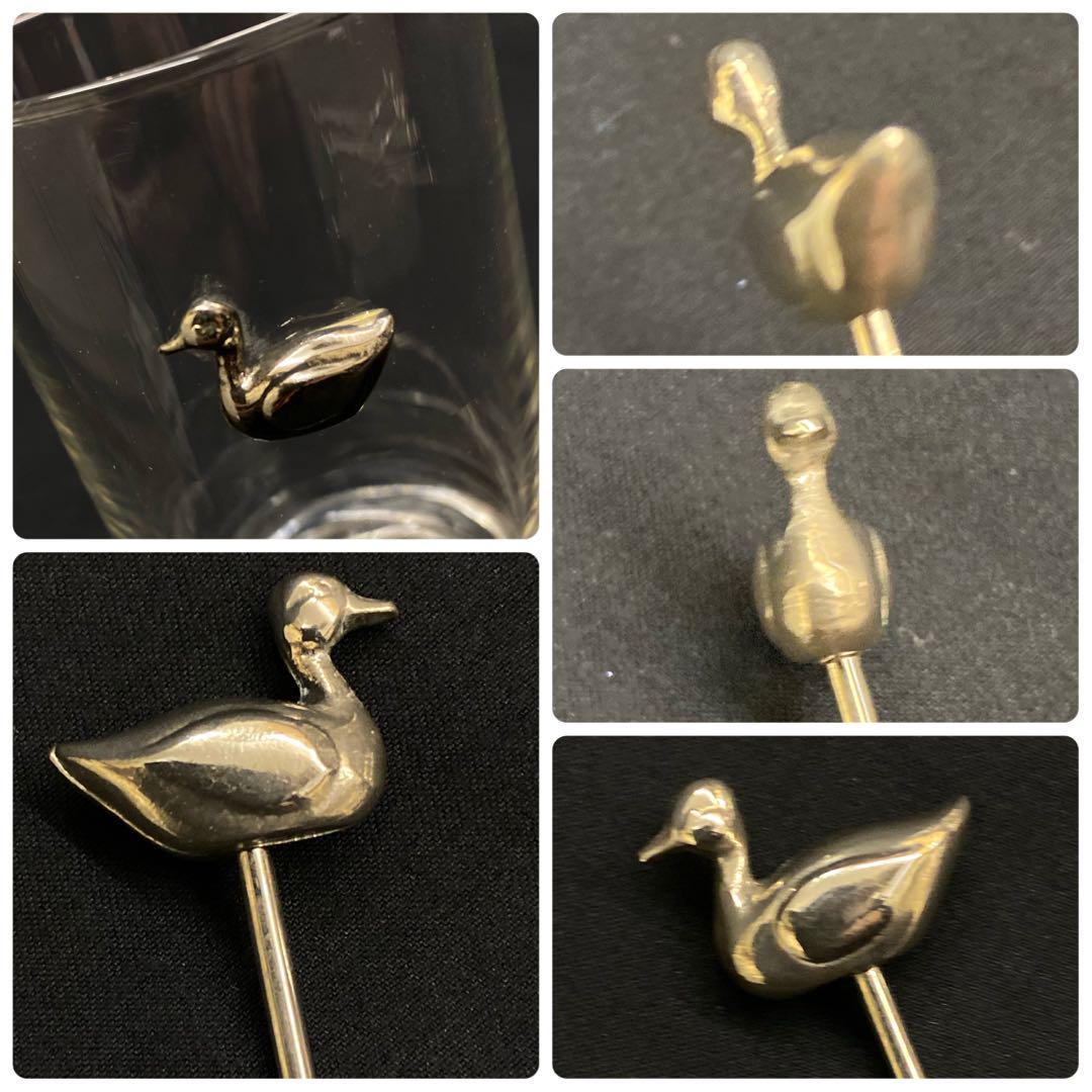 1337 希少レア アヒル トリ型 シルバー製 マドラー6本 グラス セットタンブラー カップ 鳥 トリ フランス製 アヒル カモ 鴨 duck