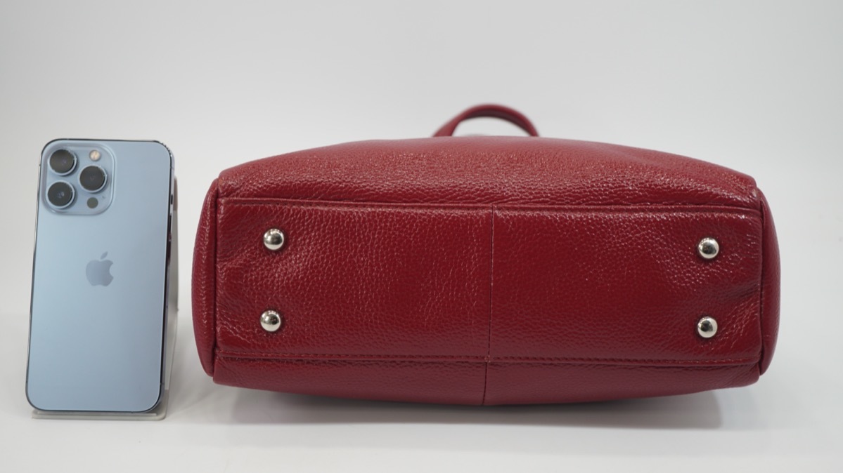 底鋲金具を底面に配置し、バッグの保護や水濡れを防ぎます。デザイン面でも高級感を演出します。