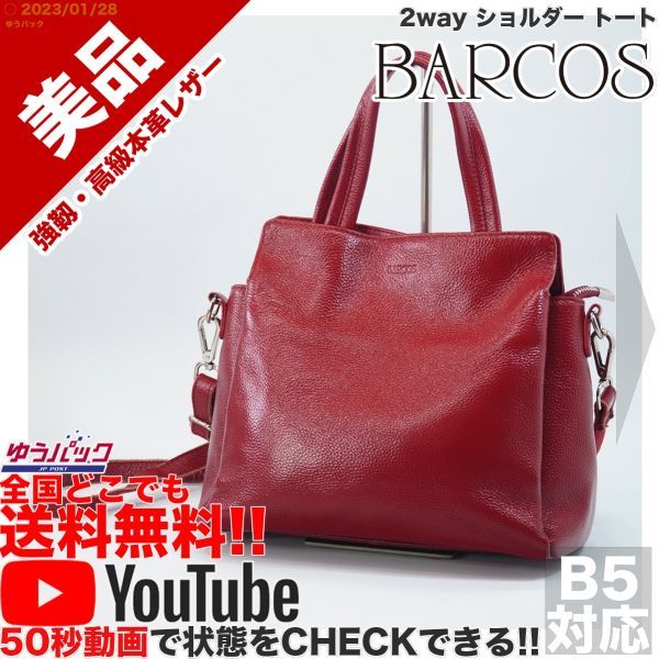 送料無料★即決★YouTubeアリ★ 参考定価28000円 美品 バルコス BARCOS 2way ショルダー トート オールレザー バッグ