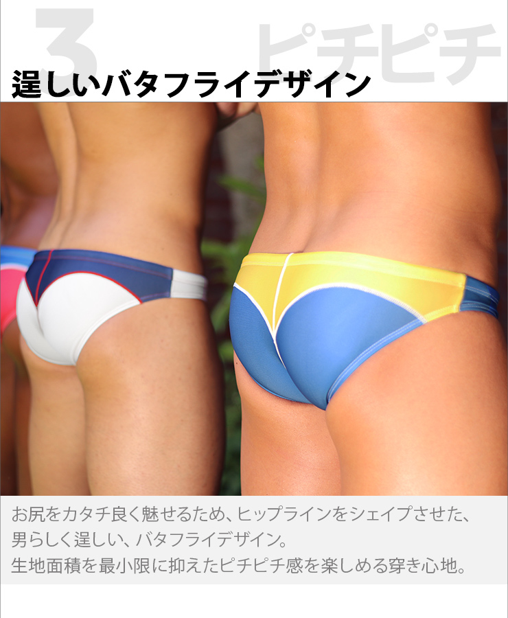 フロントのトライアングル&お尻のバタフライデザインで、競泳水着をイメージしたフォルム。