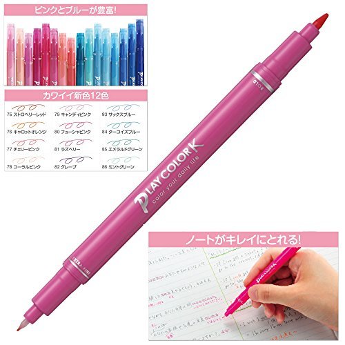 ・36色セット GCF-013・・Color:36色セット・【色】36色セット・【仕様】ツインタイプ/太字(0.8mm)・超極細(0.3mm)・【用途】一般筆記・デザイン・スケッチ用・アンダーライン用・【インク】水性染料インク・【単品サイズ】最大幅12×全長153mm/重量8g水性カラーペン「プレイカラーK」の36色入りセット。 細かい文字もつぶれない超極細芯0.3mmと、固めで丈夫な太芯0.8mmのツインタイプ。 極細と太芯を使い分けて学習ノートも簡単&キレイに仕上げることができる。 【36色セット】 もも・だいだい・きいろ・きみどり・みずいろ・あか・すみれいろ・あお・みどり・ショコラ・くろ・さくらいろ・あいいろ・プリンセスピンク・やまぶきいろ・ライムグリーン・そらいろ・ふじいろ・ハニーオレンジ・はいいろ・ピーチピンク・フューシャピンク・エメラルドグリーン・ネイビー・ストロベリーレッド・キャロットオレンジ・チェリーピンク・コーラルピンク・キャンディピンク・ラズベリー・グレープ・ミントグリーン・アクア・ターコイズブルー・サックスブルー・フレンチブルー