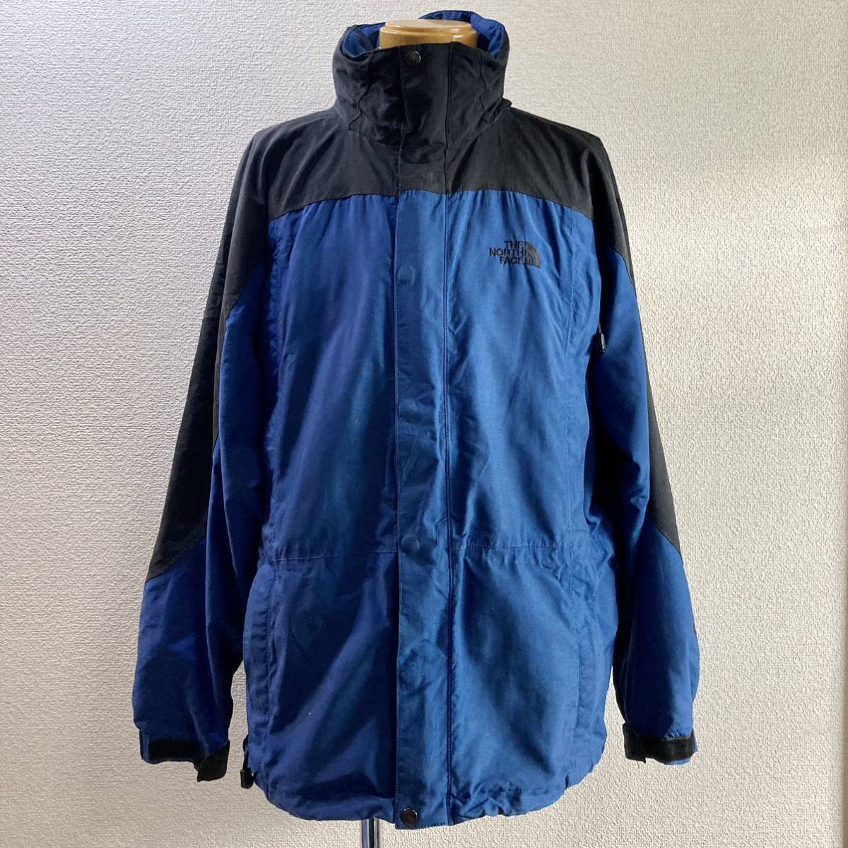 好配色 ノースフェイス THE NORTH FACE ナイロンジャケット L マウンテンパーカー 青×黒 ブルー×ブラック ソフトシェル 古着 ロゴ刺繍