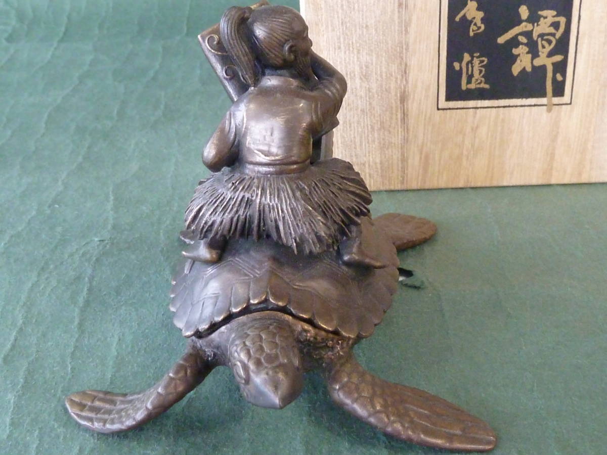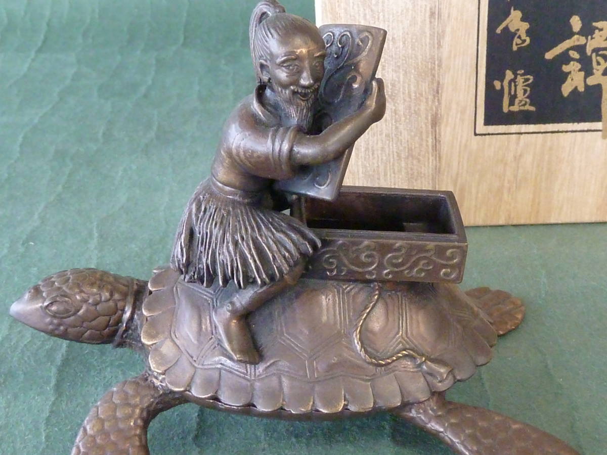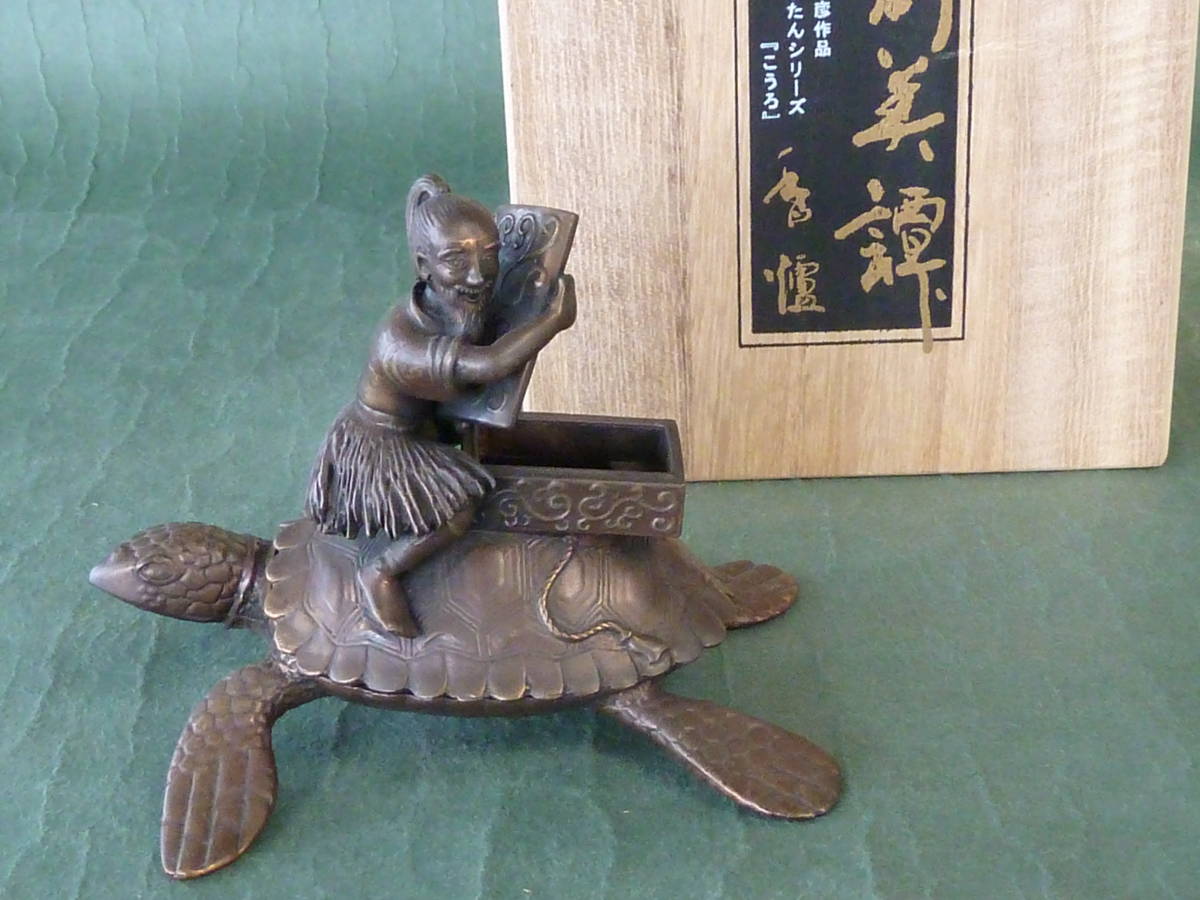 浦島太郎 香炉 香立 横12cm奥行10.5cm高さ9cm 蝋型青銅製 新品