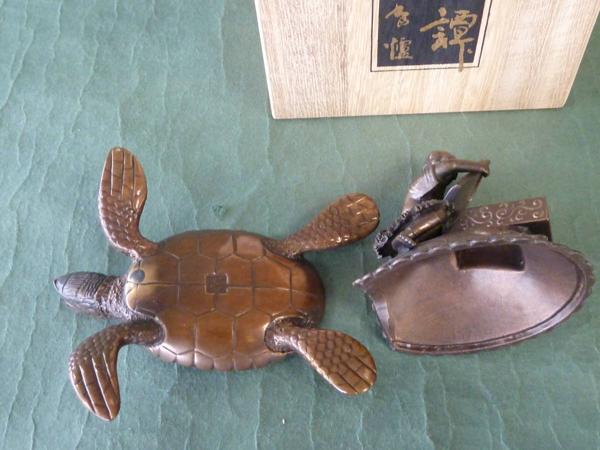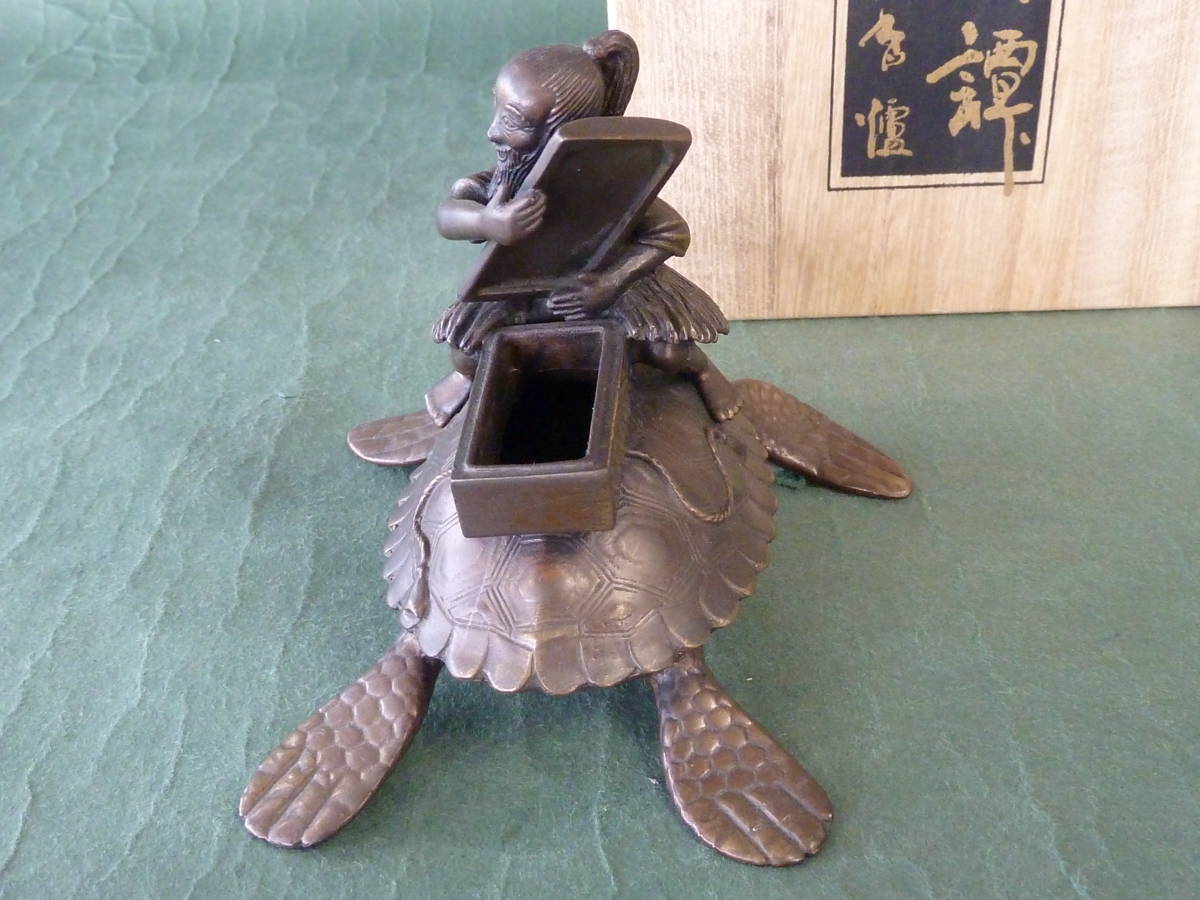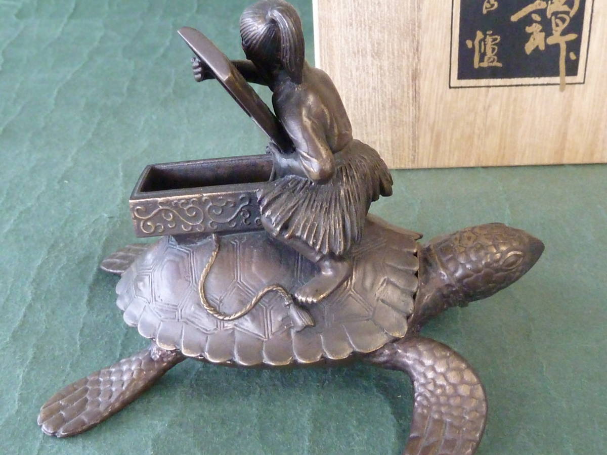 浦島太郎 香炉 香立 横12cm奥行10.5cm高さ9cm 蝋型青銅製 新品