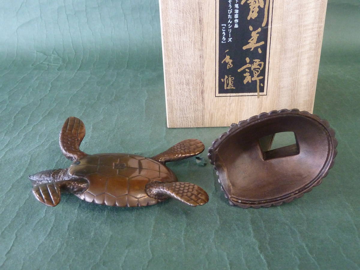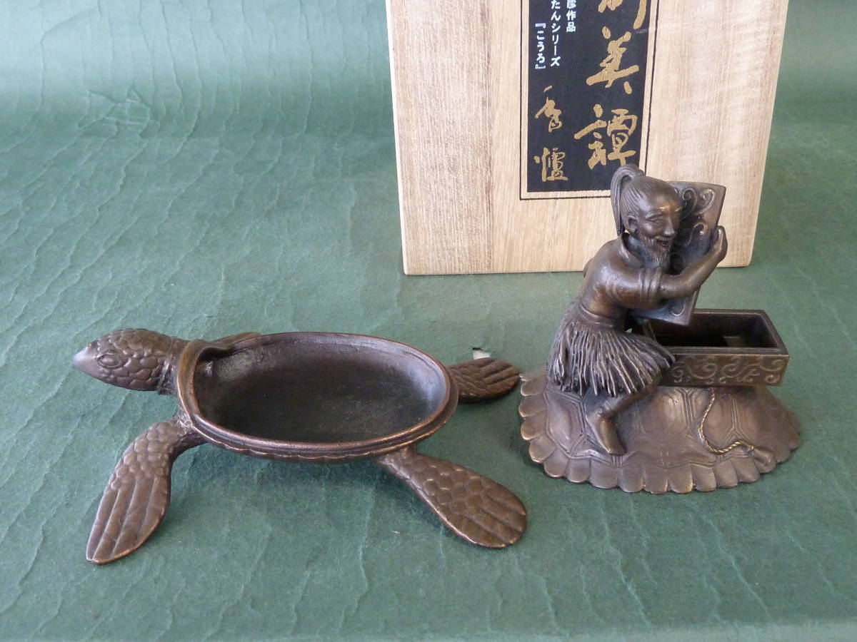 浦島太郎 香炉 香立 横12cm奥行10.5cm高さ9cm 蝋型青銅製 新品