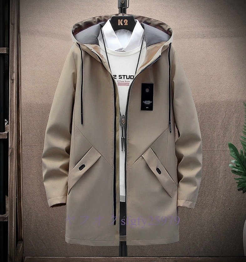 P727新品メンズ ロングコー トトレンチコート アウター シンプル ジャケット フード付き ブルゾン M~3XL ブラウン