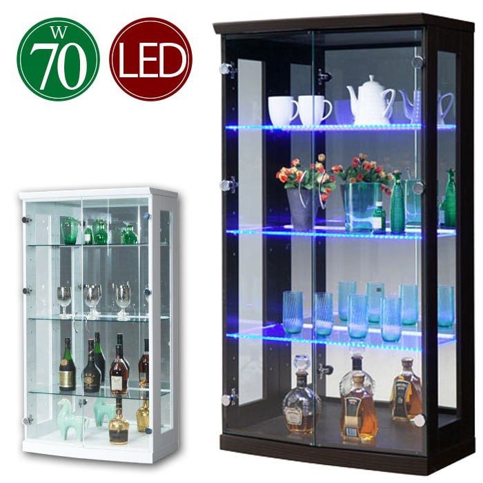コレクションケース 幅70cm フィギュア コレクションボード LEDライト 完成品 キュリオケース 背面ミラー ホワイト