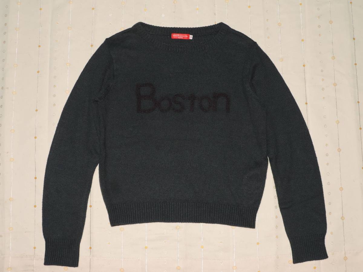 ♪アースミュージック&エコロジーのBoston文字デザイン緑の長袖ニット☆Mサイズ☆セーター☆