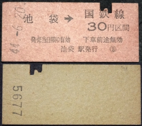 655☆☆硬券・乗車券・国鉄・池袋30円区間・44.6.20☆