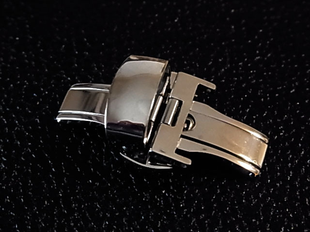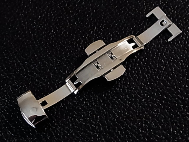 ステンレスのプッシュ式跳ね上がりDバックルです。 こちらはブランドにも採用されている板バネで跳ね上がる仕様で一般的なお品の上位モデルです。 他ではなかなか手に入れることができないお品です。 鏡面仕上げ。 バネ棒は付属しません。 取付幅:14mm用。 (お願い) 新品未使用ではございますが擦れや傷、小汚れ等はご了承下さい。 |