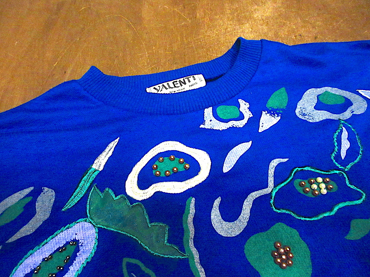 1990's VALENTI レディースパール付きスウェット 青 size S/P