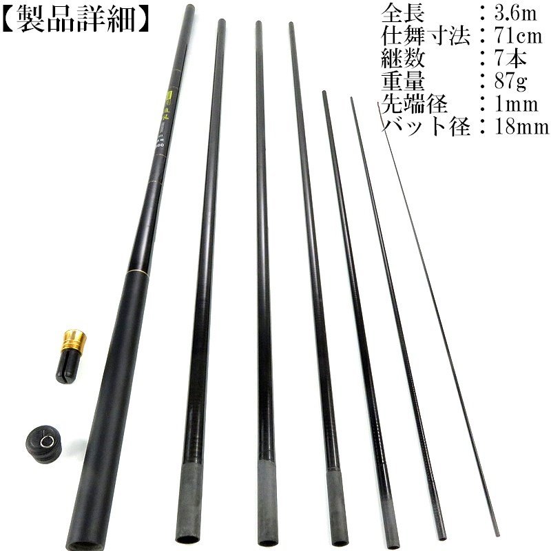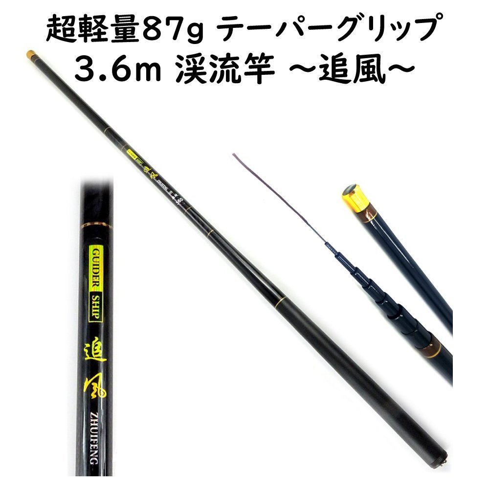 入門用におすすめ 【 渓流竿 3.6m 追風 】 硬調 カーボン 超軽量 87g 竿袋付 渓流釣り ヤマメ イワナ ニジマス トラウト 釣り竿
