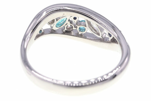 石目 | S0.08/0.13/D0.17刻印 (サファイア 2石 計0.08ct×トルマリン 3石 計0.13ct×ダイヤモンド 3石 計0.17ct) |