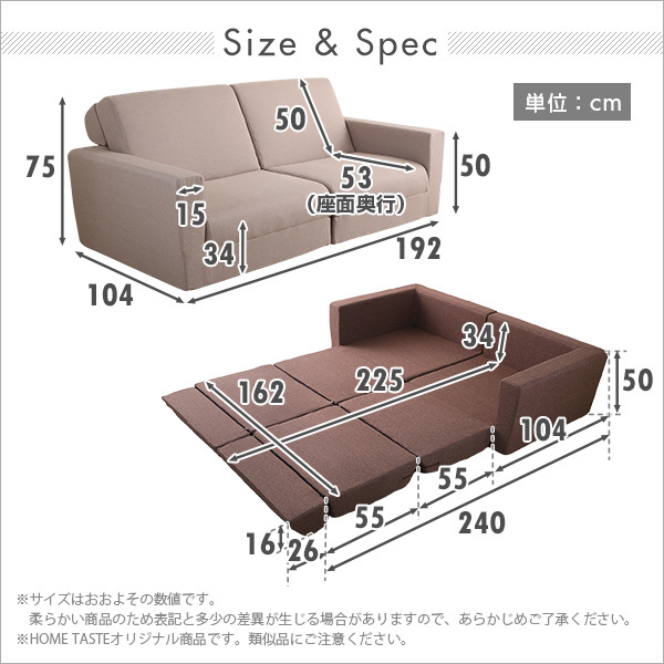 (約)幅192x奥行き104~240x高さ50~75cm (約)56kg