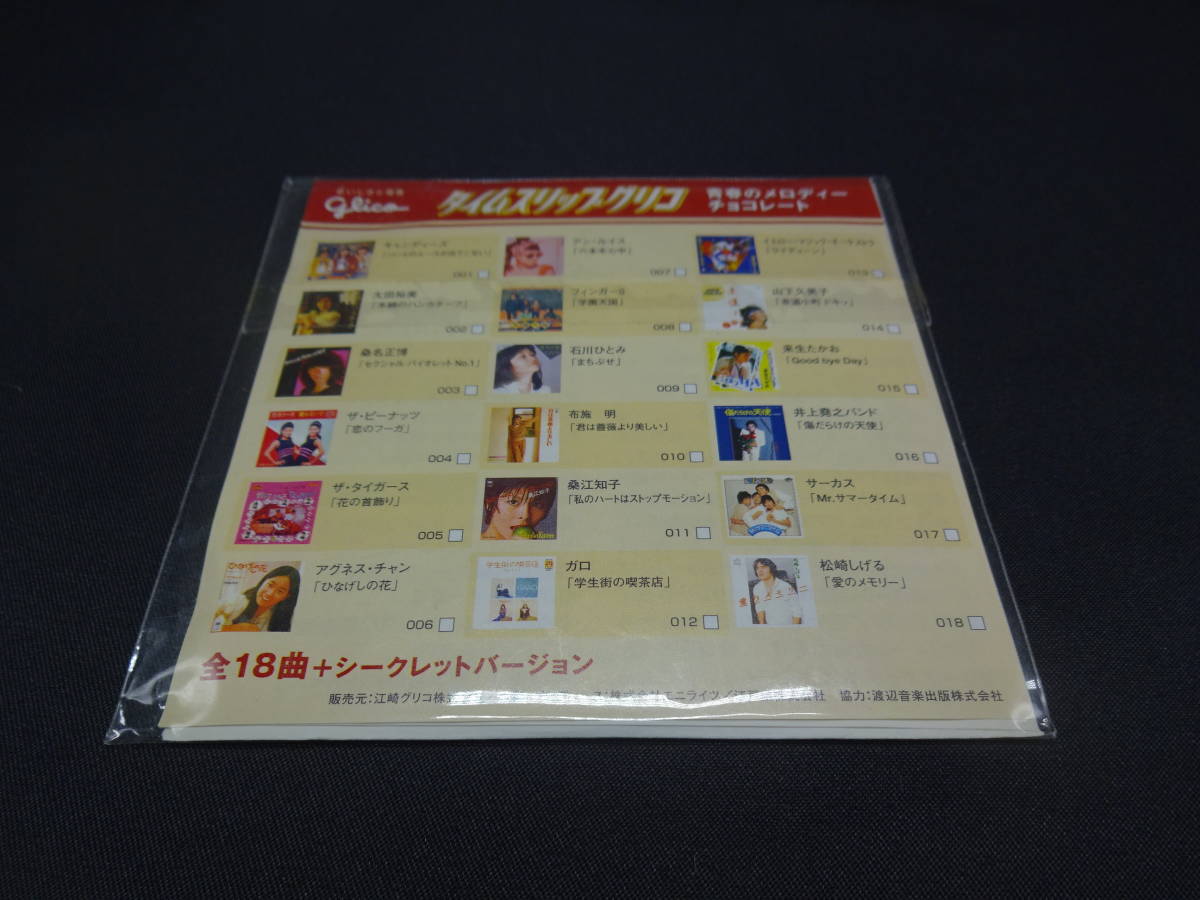 商品説明 | 品名:タイムスリップ グリコ「青春のメロディーチョコレート」 メーカー:グリコ アーティスト:来生 たかお 曲目:2曲 状態:未使用に近い |