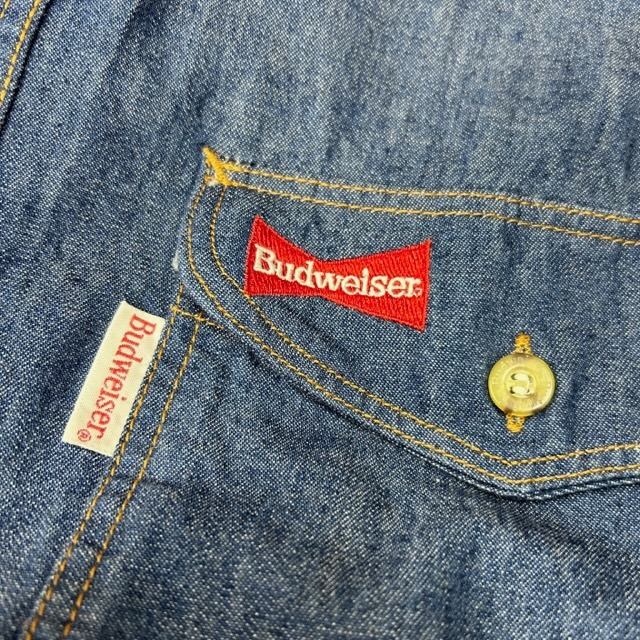 sh●453 80s~90s Budweiser ロゴ刺繍デニムシャツ M~L バドワイザー オールド ヴィンテージ 長袖 ビール 企業物