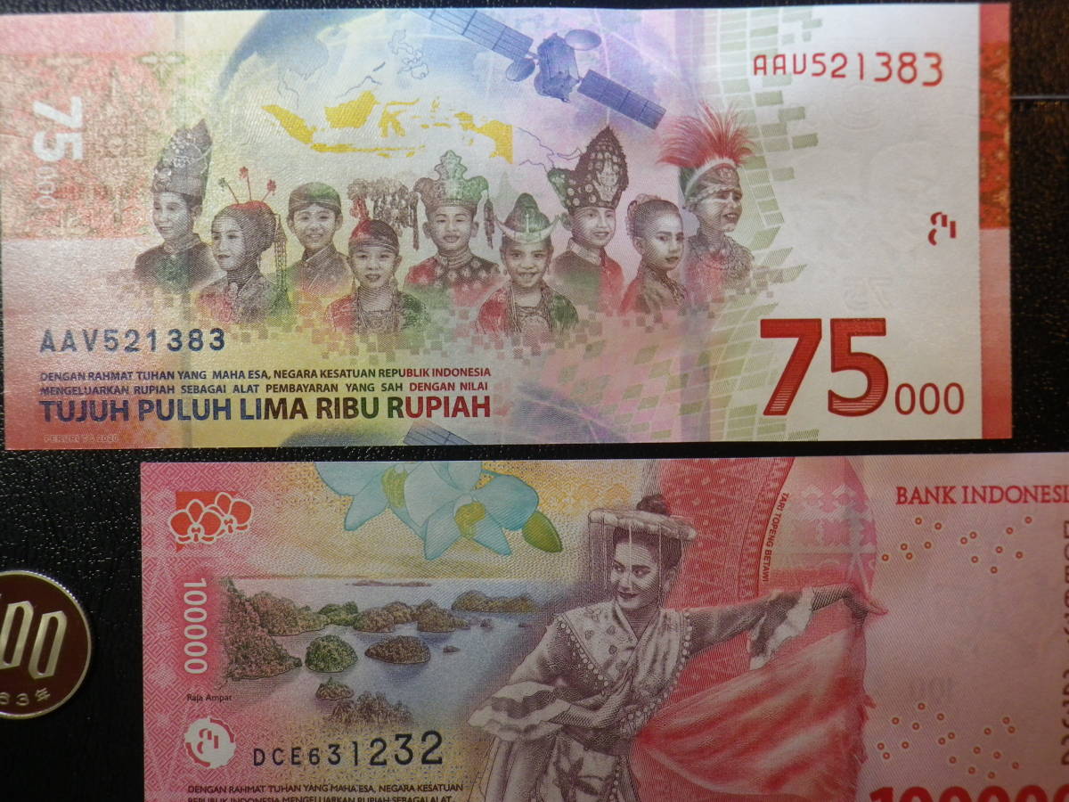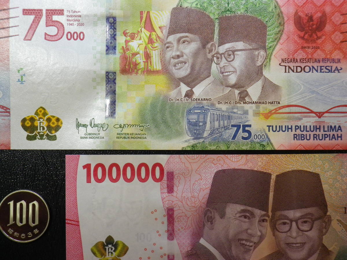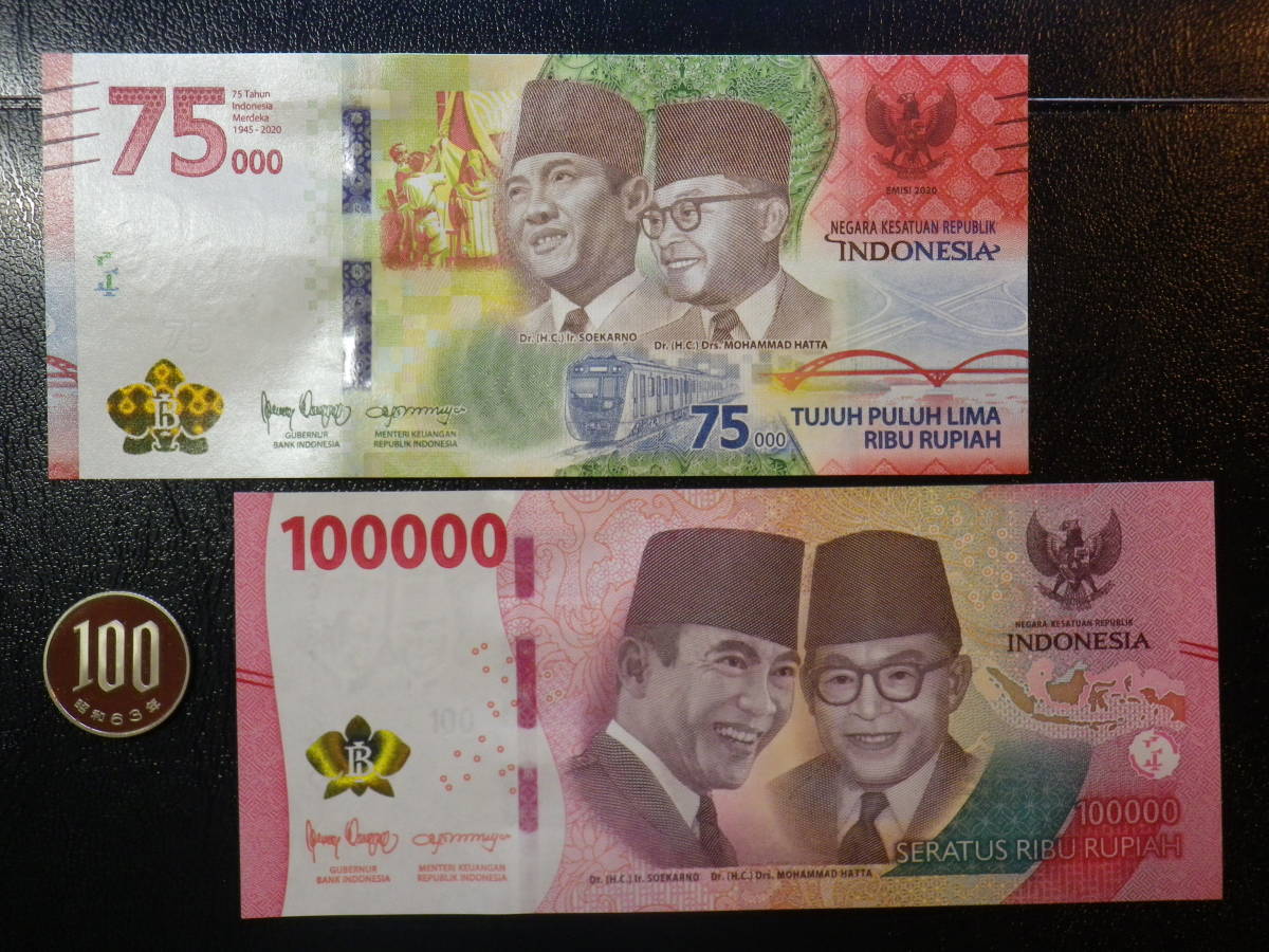 インドネシア 2022年 100000Rp & 2020年 75000Rp 記念紙幣 2種2枚 未使用