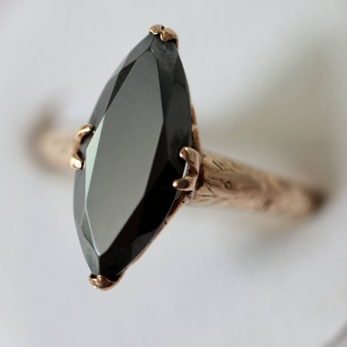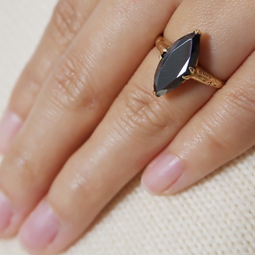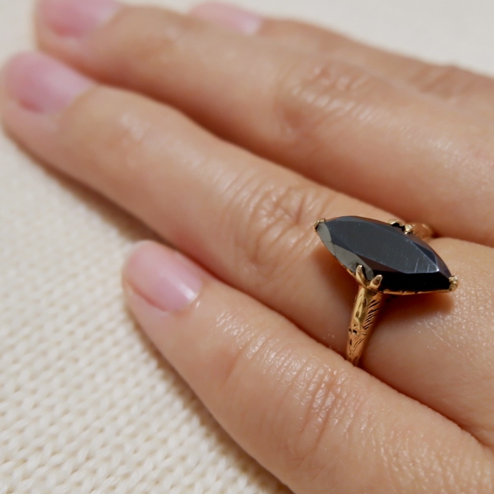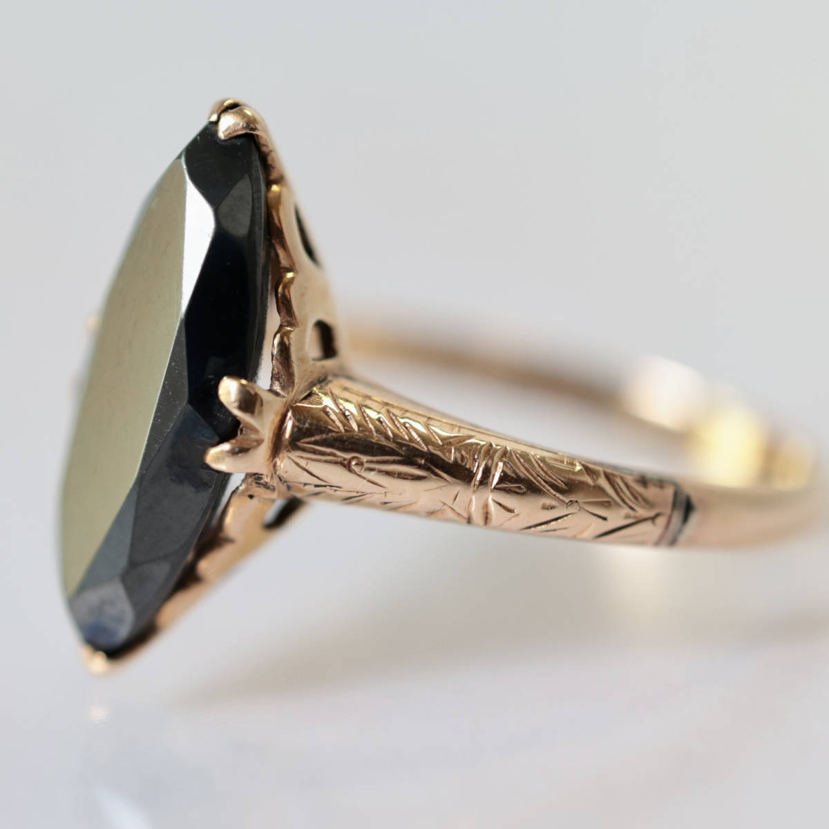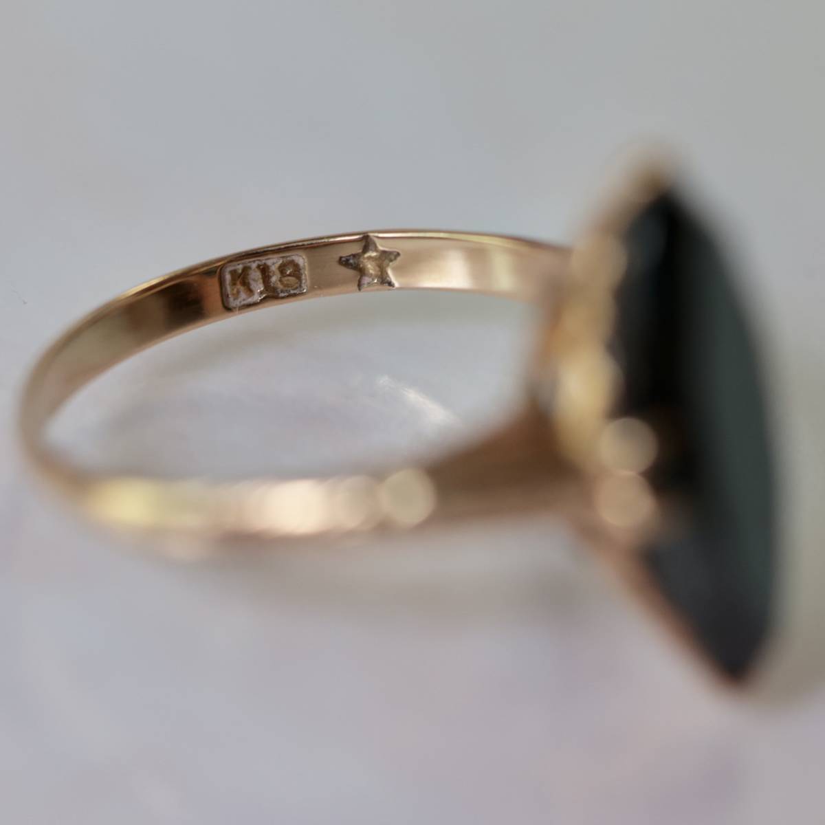 K18 陽刻 ヘマタイト 彫金 リング 工房刻印 日本の古い指輪