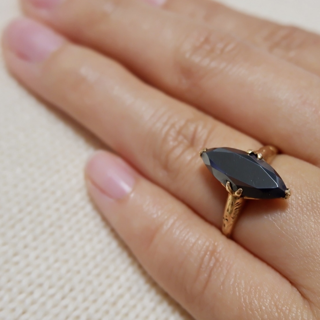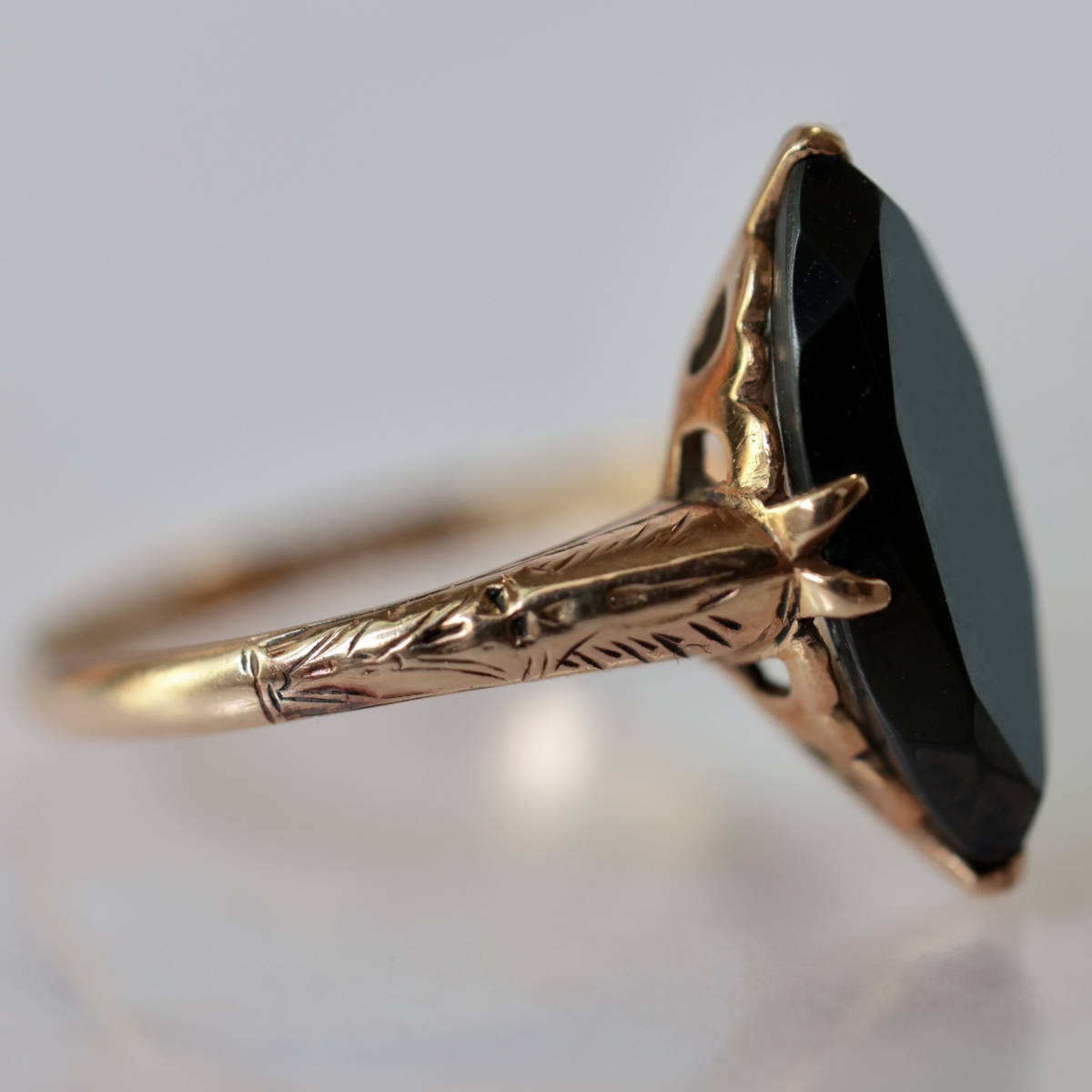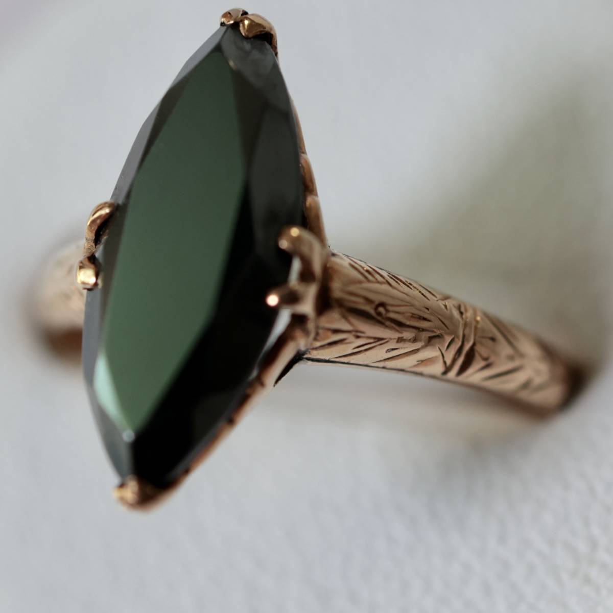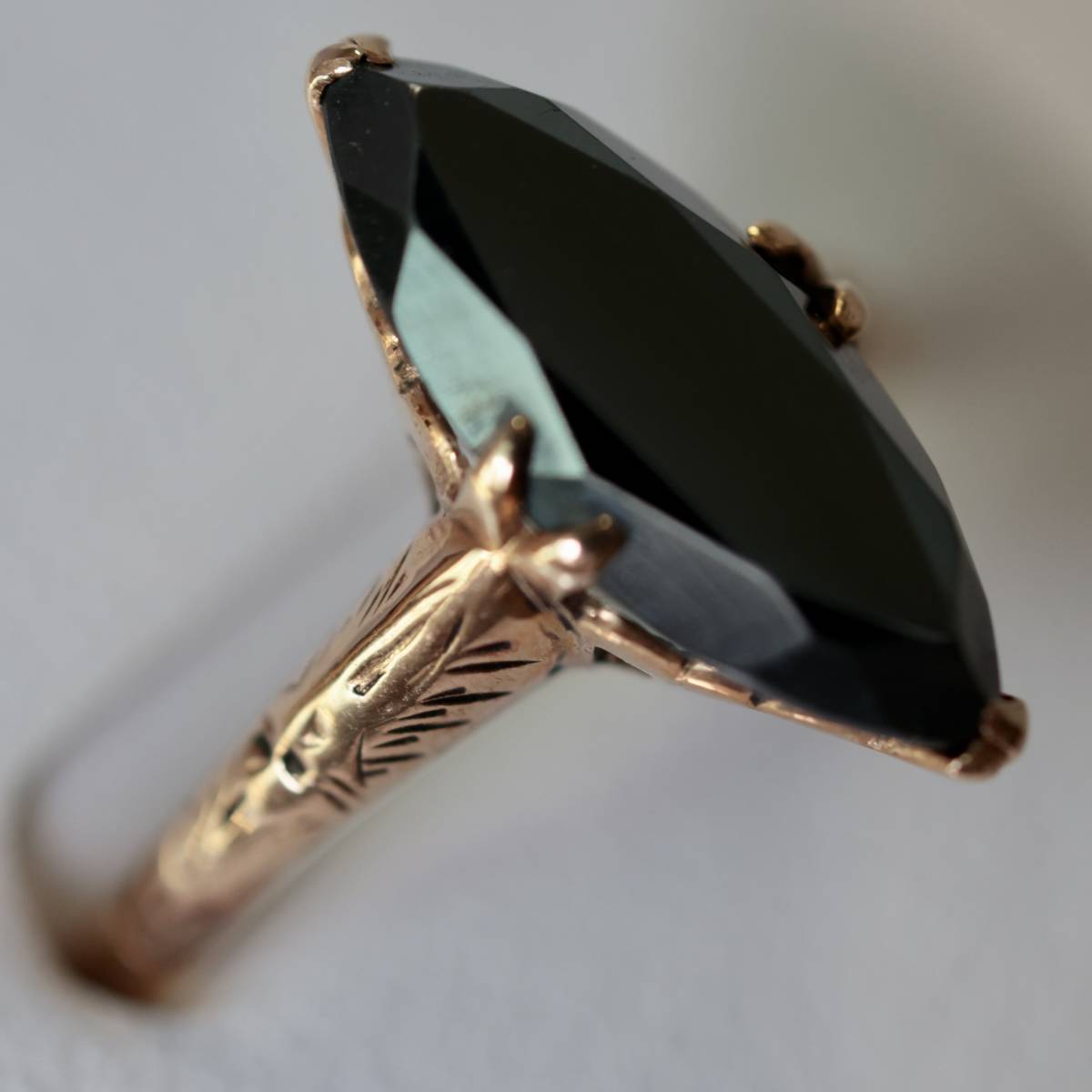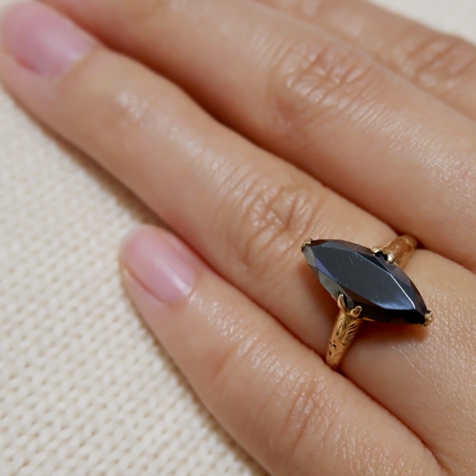 K18 陽刻 ヘマタイト 彫金 リング 工房刻印 日本の古い指輪