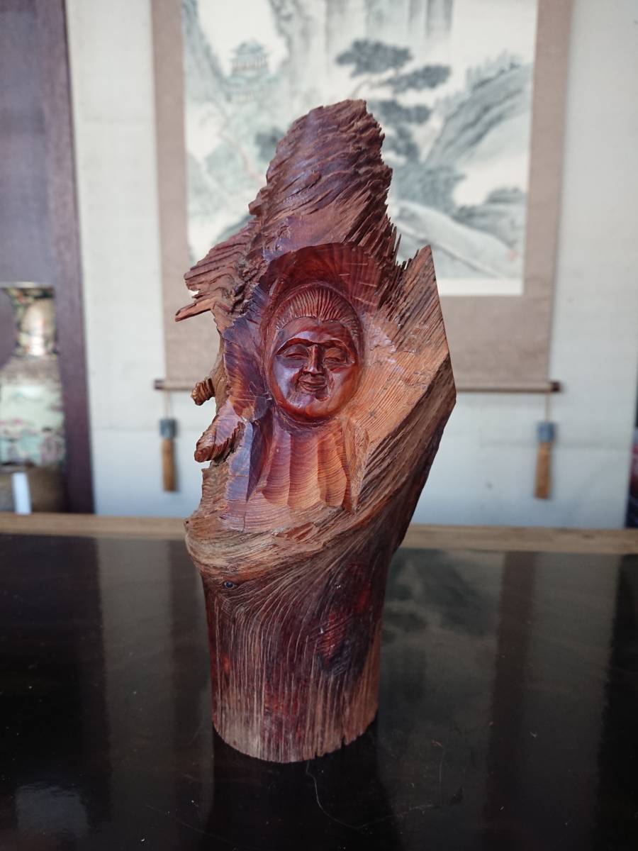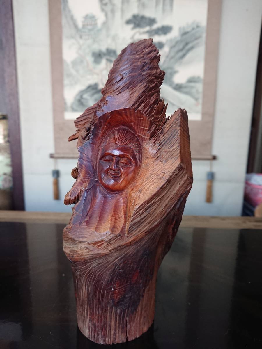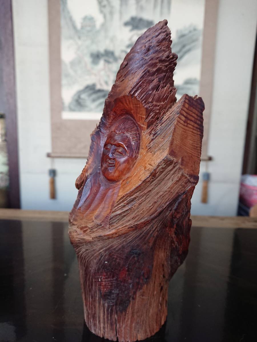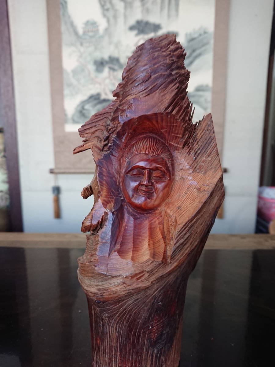 讃岐一刀彫り 肥松 観音様です。高さ23cm送料全国一律1500円