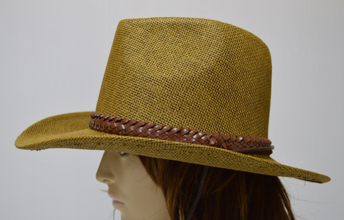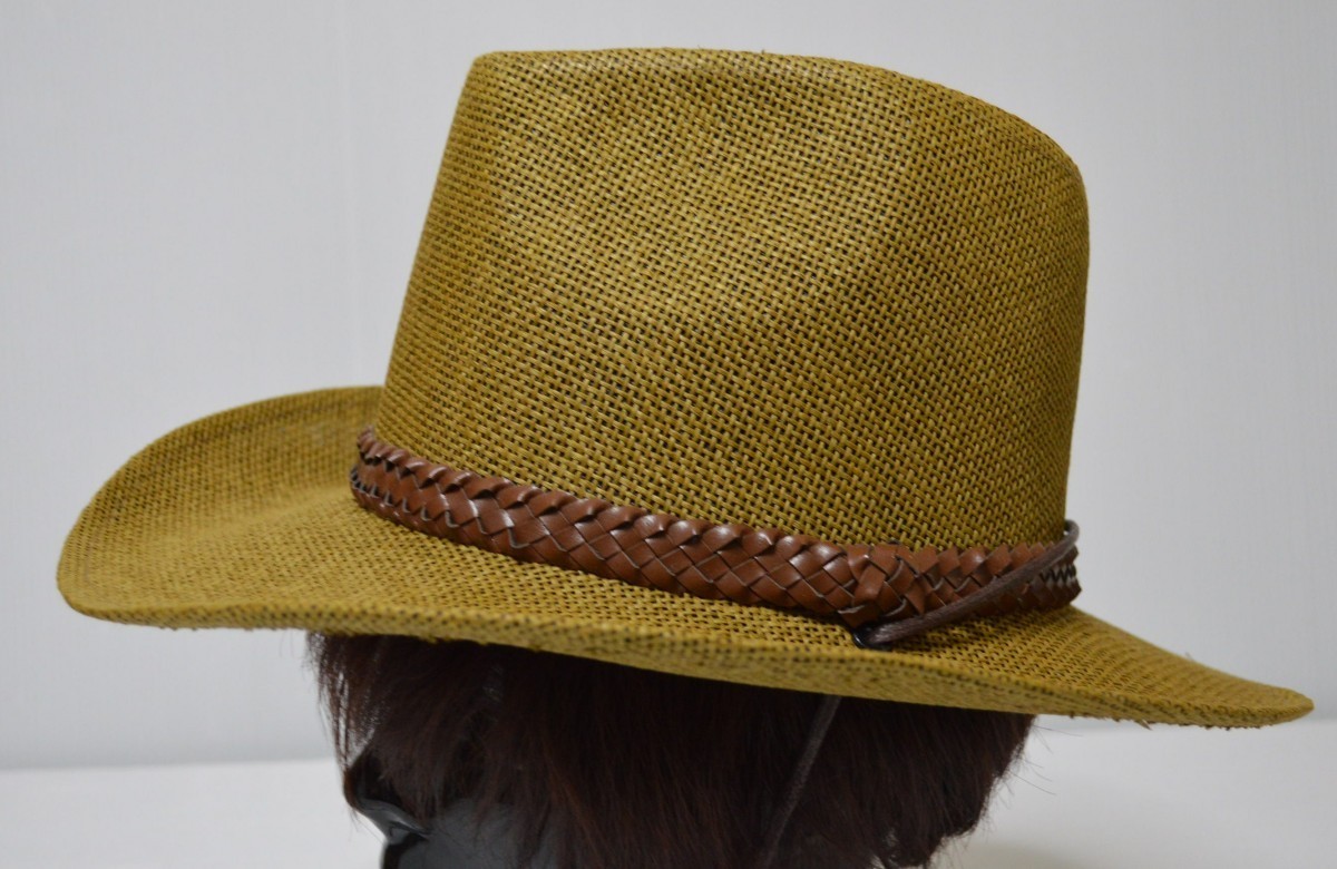 編みこみ【メッシュ】帯の付いた涼しい素材のテンガロンハットです。素材表示はペーパーxポリエステルのしっかりとした素材です。