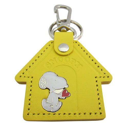 スヌーピーのお家型の皮革製キーホルダー《黄色》