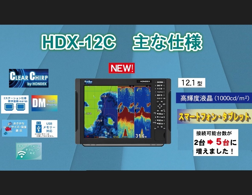 在庫あり HDX-12C 2KW 社外 9軸ヘディング付 振動子 TD361 クリアチャープ魚探搭載 12.1型 GPS魚探 HONDEX ホンデックス | |||||