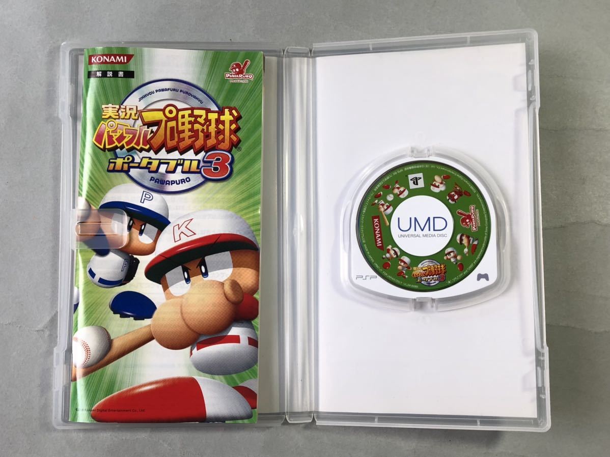 PSPソフト 実況パワフルプロ野球ポータブル3 「ドンドン育てて、バンバン対戦」コナミ です。ケースに擦れ跡、細かな傷、線傷、点状や線状のへこみ跡があります。ディスクのケースに取り付け跡、細かな傷、線傷があります。ディスクのデータ読み取り面に細かな傷が少しあります。起動、動作確認済みです。写真のモノが全てです。新品をお探しの方や神経質な方の入札はご遠慮下さい。ノークレーム・ノーリターンで、お願いします。入札よろしくお願いいたします。 C04-288-030305