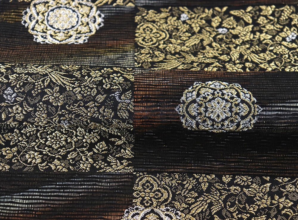 | 色・柄 | 西陣織袋帯 古代貝紫 黒・金・茶色・赤・紫地 正倉院文様 段織・葡萄・花喰鳥・華文・格子縞 (写真では上手く色が出ない場合があります。ご了承下さい) ※お使いのディスプレイの種類や設定の差により 実物の色と画像の色が少々異なることもございます。 写真の枚数が多いので一度パソコンでご覧ください。 |