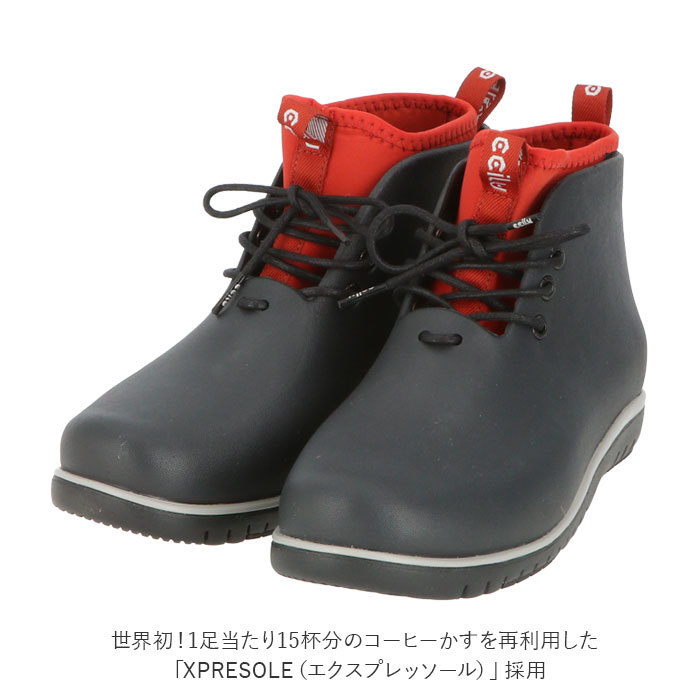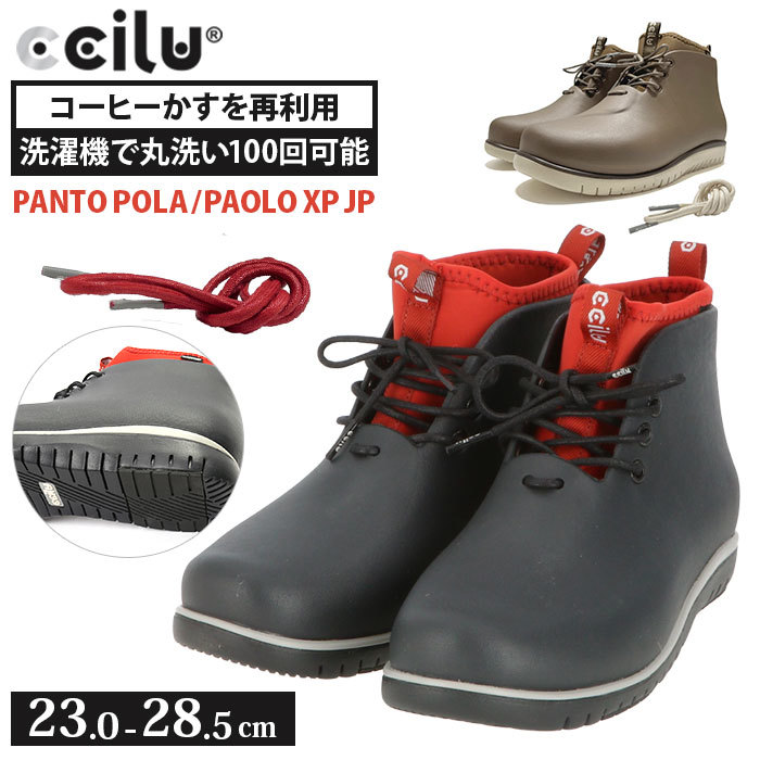 商品説明 | ・全天候型防水コーヒーブーツ、待望のハイカットデザイン。ccilu(チル)の「PANTO POLA/PAOLO XPRESOLEシリーズ」 ・世界初!1足当たり15杯分のコーヒーかすを再利用した「XPRESOLE(エクスプレッソール)」採用。 ・ソールのメイン素材にcciluが独自開発した合成樹脂ccilucell(チルセル)を使用し、歩行時の衝撃を効果的に吸収。 ・土砂降りの日でも安心な耐水性に優れたアッパーで、雨の日だって「歩く」を楽しく! ・アッパー表面には汚れに強いバフ加工を施し、泥汚れもサッと水で流すだけで元通り。 「消臭力・除湿力・通気性・速乾性」に優れたインソールで、一日中履いても快適。 ・かかとのプルストラップで、脱ぎ履きがとってもスムーズ。 ・一般的なレインブーツの約1/3の超軽量サイズ。天気の悪い日でも足取り軽やか。 2種類のグリップソールを合わせた靴底で、雪道やアウトドアでも滑りにくい。 ・洗濯機で約100回丸洗いができるので、いつでも清潔。(※予め中敷き・靴ひもを外して、表面の汚れを軽く落としてください。また、型崩れを防ぐために、タオルと一緒に洗濯機に入れてください。) 23cmから28.5cmまで、幅広くサイズを取り揃えたユニセックス仕様。 ・キレイめカジュアルからアウトドアまで、様々なファッションにマッチするシンプルデザイン。 ・色違いの交換用シューレースが付属。 「ccilu(チル)」とは・・・アマゾンの奥地で「緑の勝利」を意味する言葉。アマゾンで暮らす人たちが履いている草のサンダルから着想を得て造られた、素足の感覚に限りなく近づけた新感覚シューズ。 |