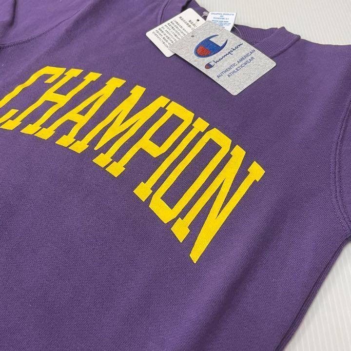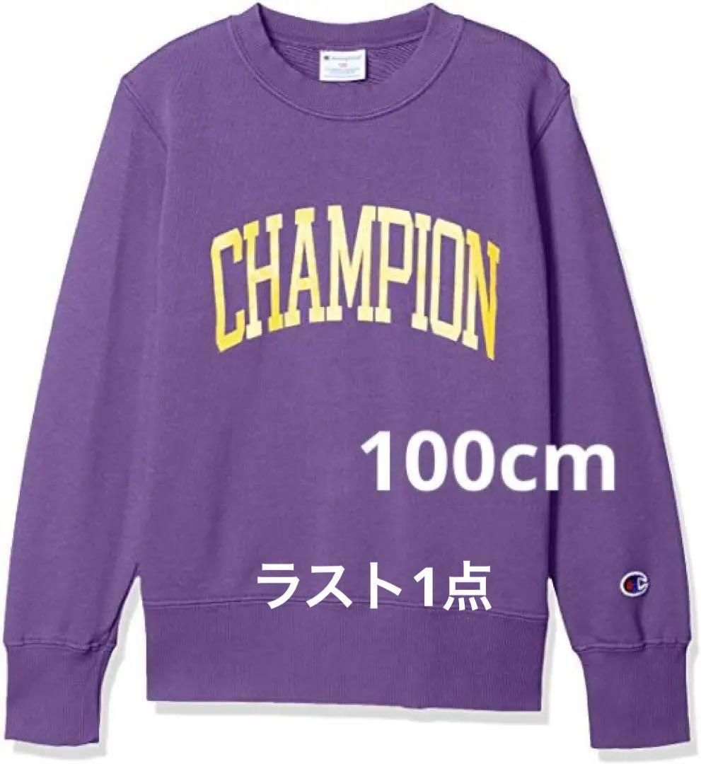 新品16665チャンピオン100cm紫プリントロゴ薄手トレーナー 長袖トレーナー