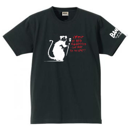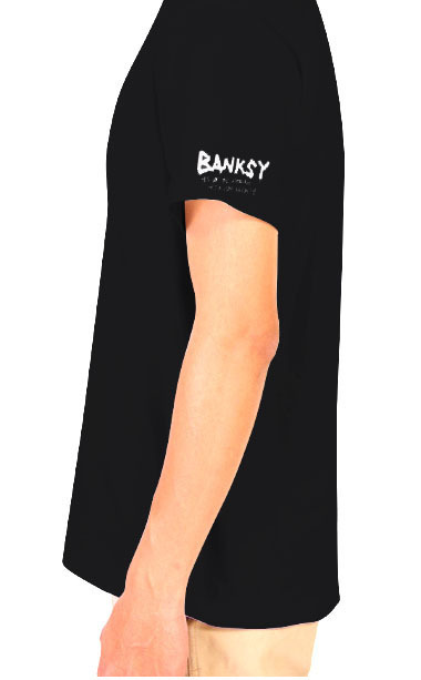 【バンクシー黒S】5oz杖をもつネズミ袖プリントTシャツbanksyおもしろメンズネタプレゼント送料無料・新品