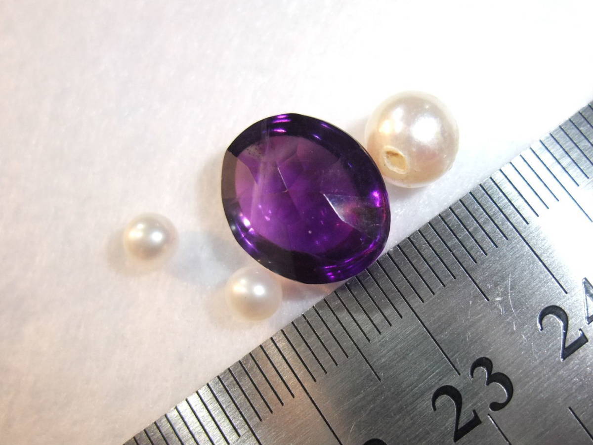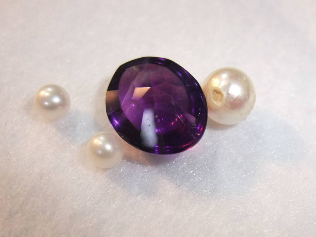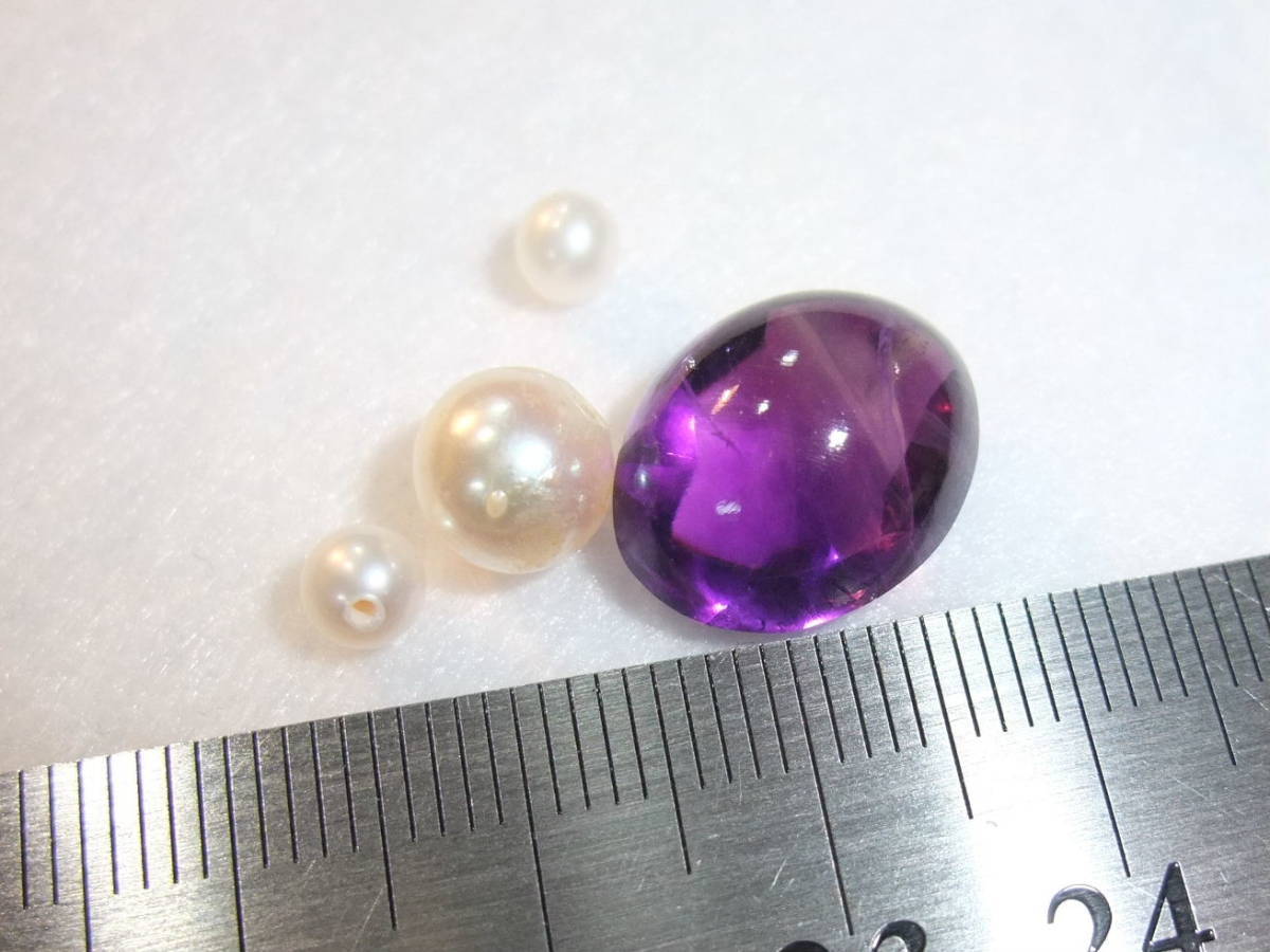 レア!アメジストカットカボッション幽玄紫水晶ルース&中粒アコヤ真珠と小粒淡水真珠のセット♪本物パール付き!まとめて同梱可能☆パワーストーンルースとあこや真珠や淡水真珠のセット♪☆