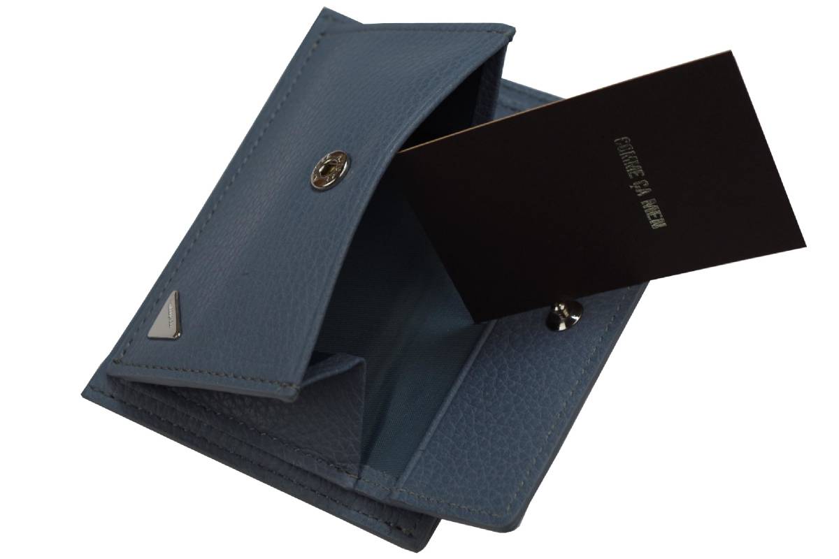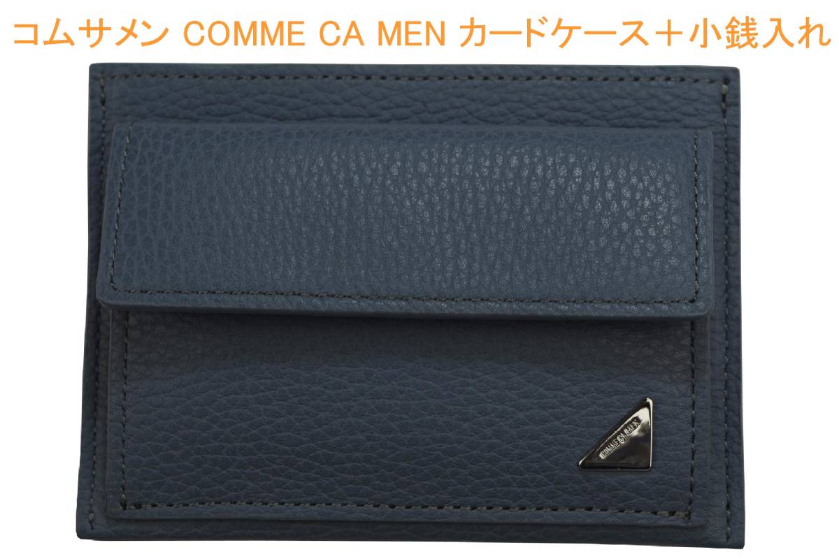 ■コムサメン COMME CA MENの小型小銭入れ+カードケース、新品です。サイズは約10.5cm×約7.8cm×約2cm。小銭入れ1カ所(折りたためば数枚の札も入ります)、カードポケット2カ所、その他のポケット2カ所(真ん中と小銭入れの後ろ)。素材は牛革。色はブルーグレー系。正規ライセンス会社扱い品です。