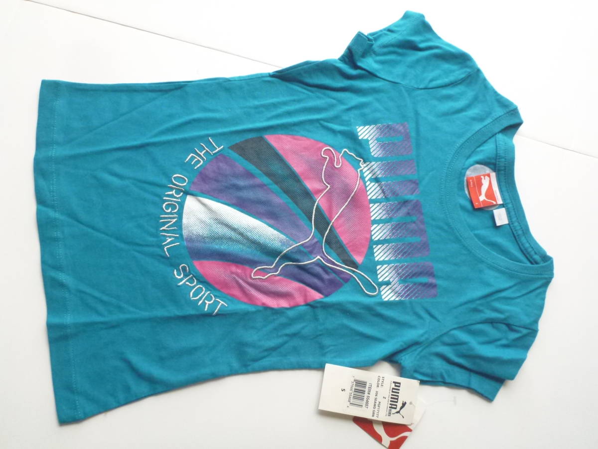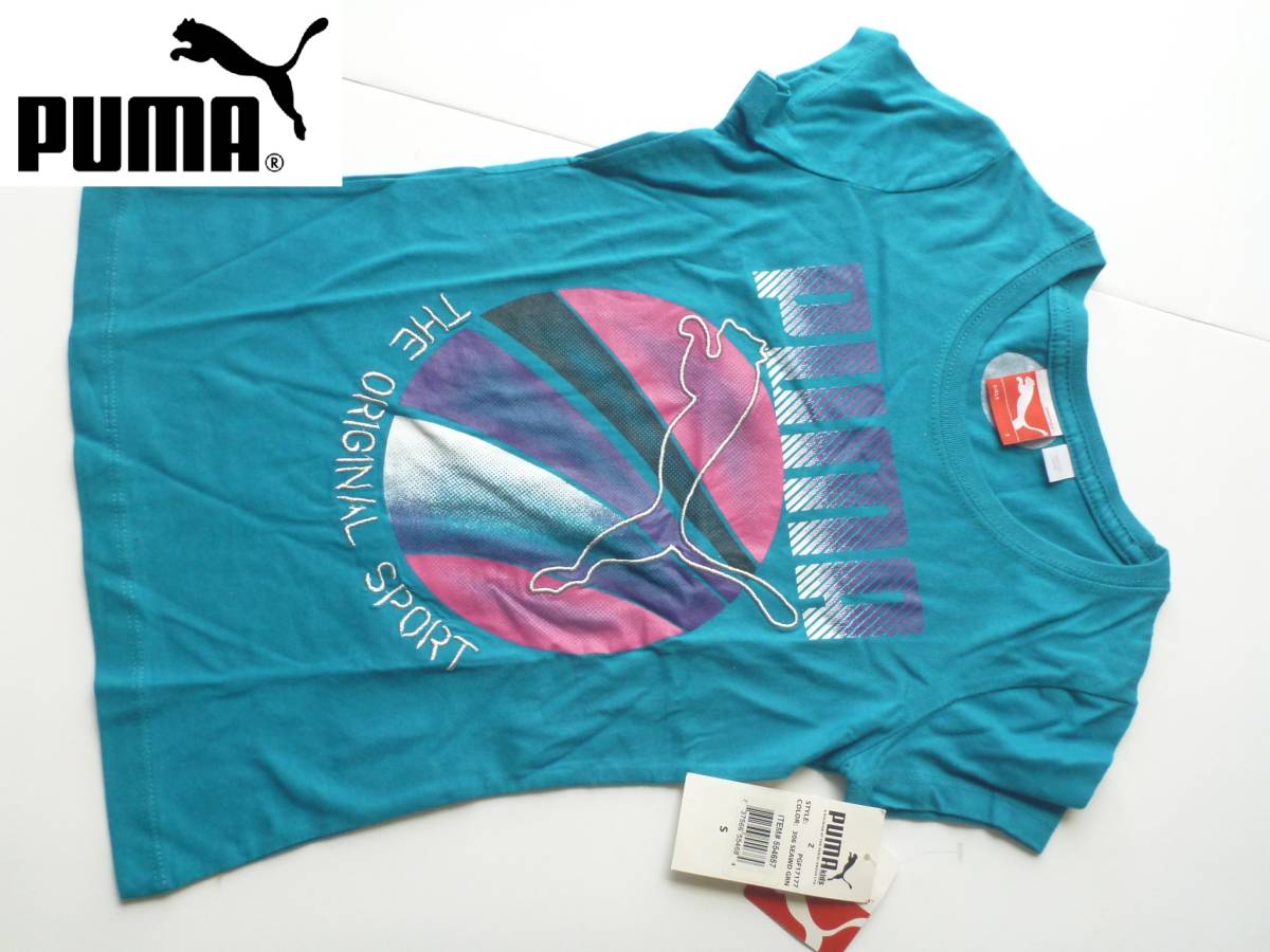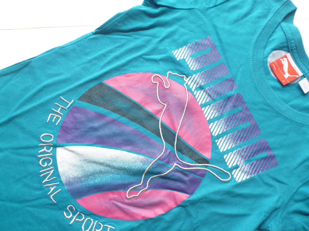 新品 PUMA プーマ★グリーン系 シルバー刺繍 半袖Tシャツ S…120相当